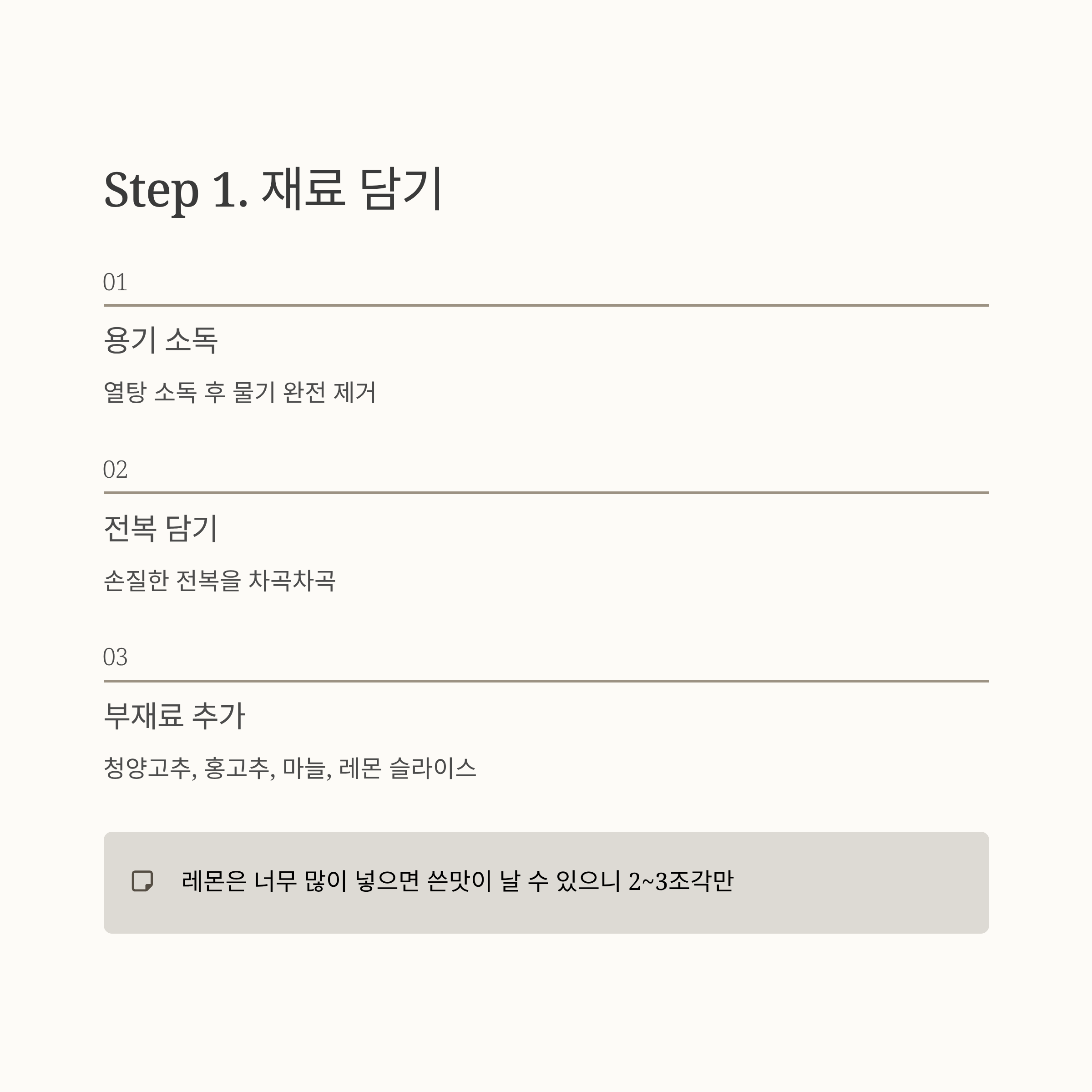 - 통후추: 10~15알 (알싸한 향을 더해줍니다.)