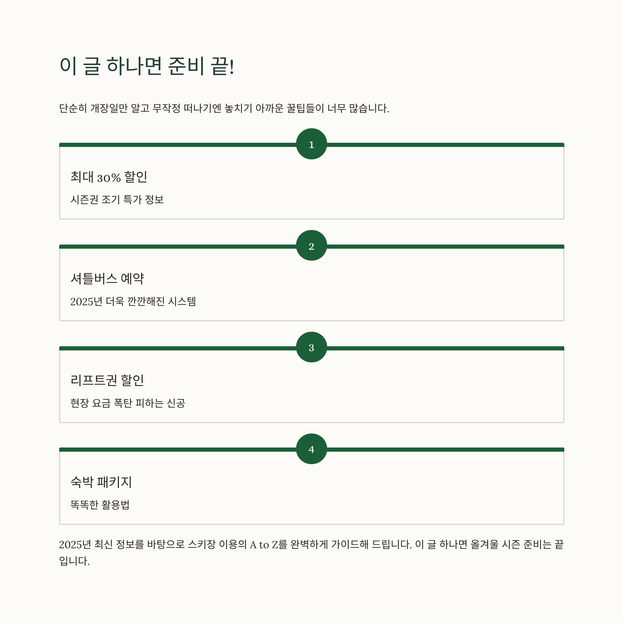 하지만 단순히 개장일만 알고 무작정 떠나기엔 놓치기 아까운 꿀팁들이 너무 많습니다. 남들보다 최대 30% 저렴하게 구매하는 시즌권 정보부터 2025년부터 더욱 깐깐해진 무료 셔틀버스 예약 시스템, 그리고 현장 요금 폭탄을 피하는 리프트권 할인 신공과 숙박 패키지 활용법까지! 2025년 최신 정보를 바탕으로 스키장 이용의 A to Z를 완벽하게 가이드해 드립니다. 이 글 하나면 올겨울 시즌 준비는 끝입니다.