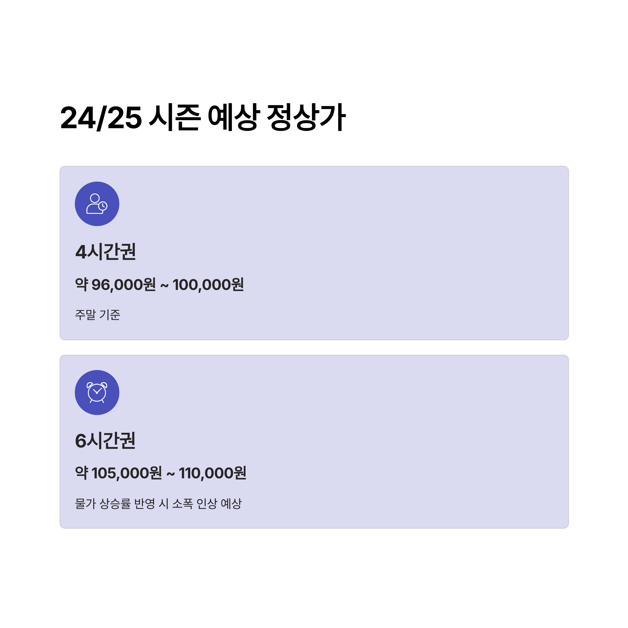 - 24/25 시즌 예상 정상가 (주말 기준):