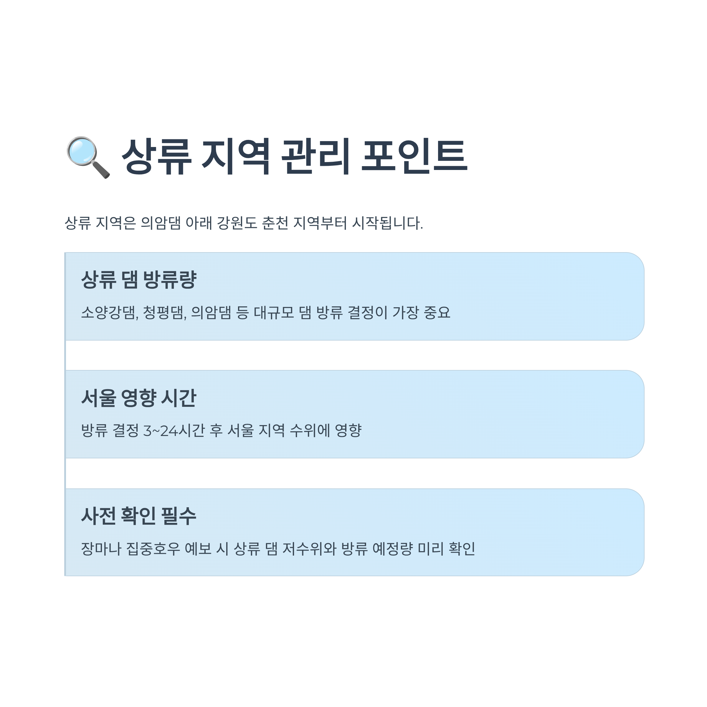 상류 댐 방류량 결정이 가장 주목할 점입니다.
