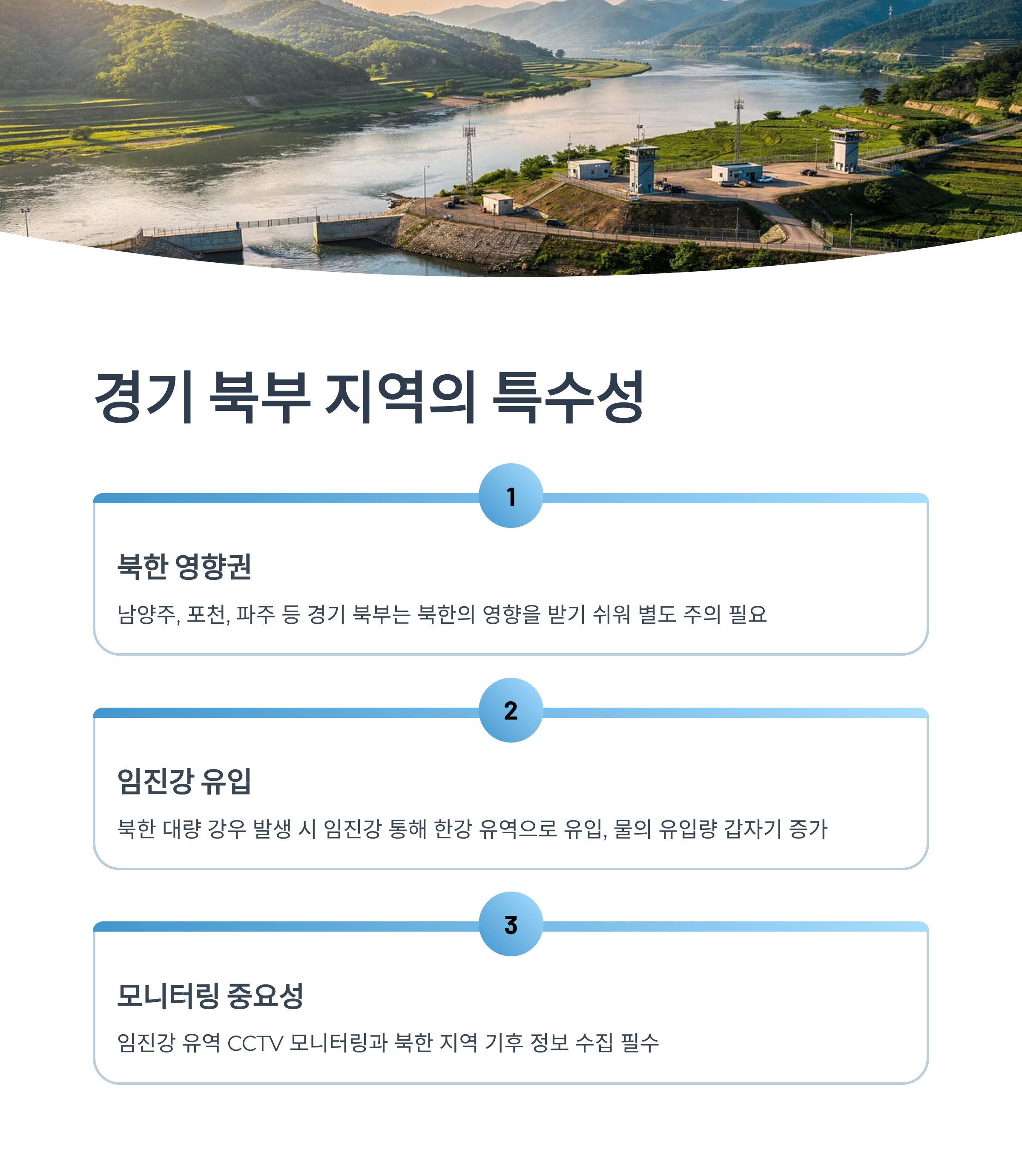임진강 유역의 CCTV 모니터링이 중요합니다. 북한 지역의 기후 정보 수집이 필요합니다.
