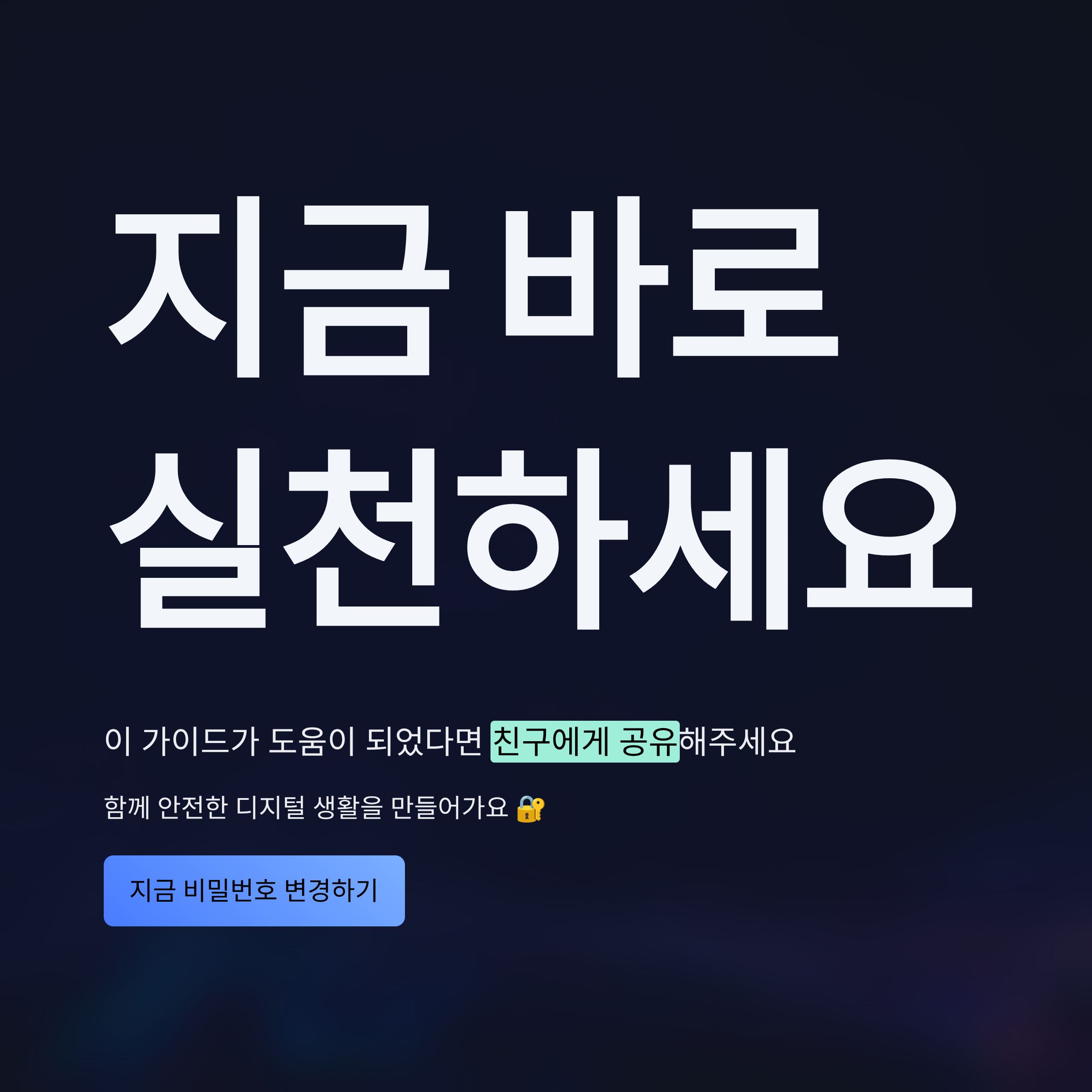 - 주기적 변경: 최소 3~6개월마다 한 번씩 바꿔주는 것이 가장 안전합니다. 알림 설정을 해두면 잊지 않고 변경할 수 있습니다.