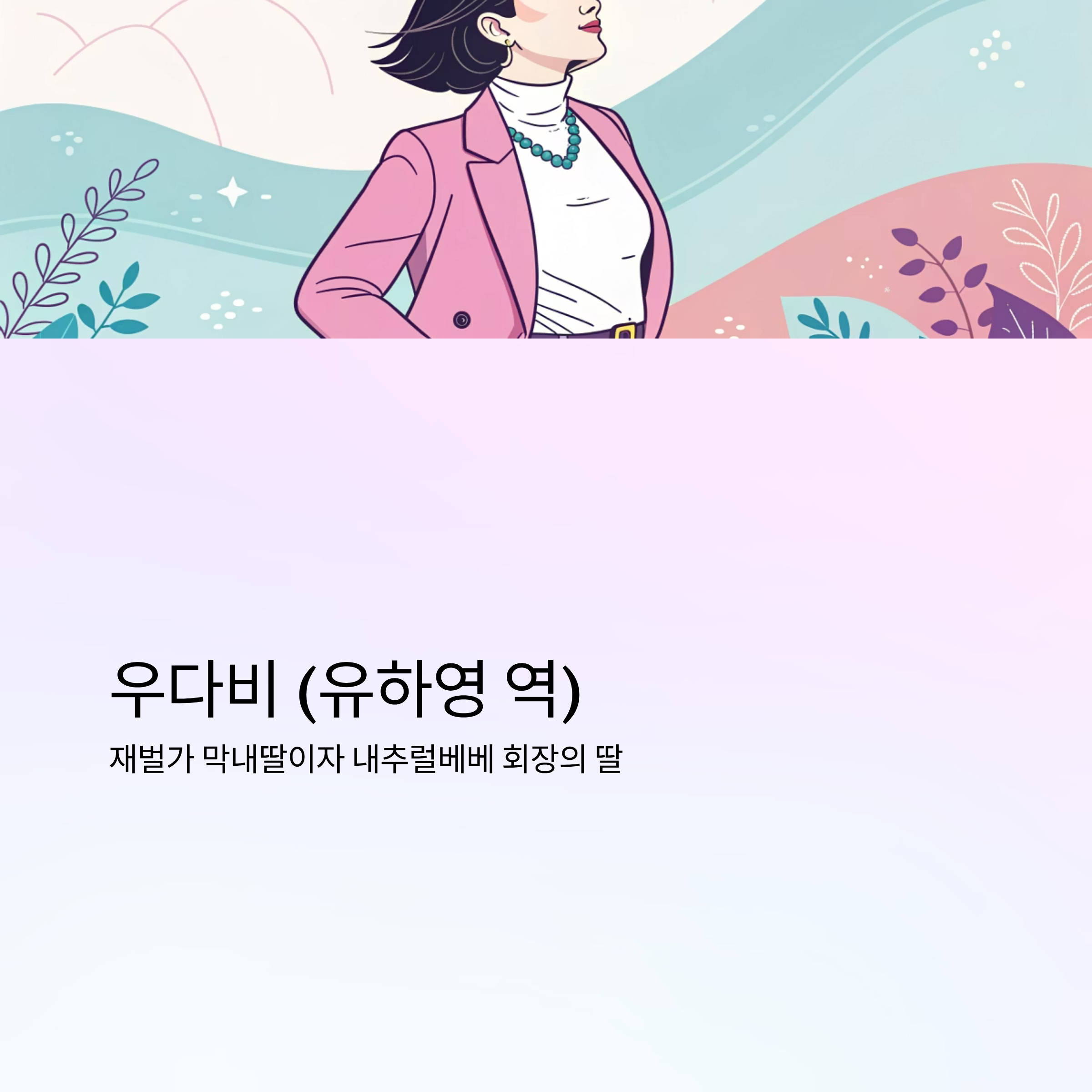 - 캐릭터: 재벌가 막내딸이자 내추럴베베 회장의 딸.