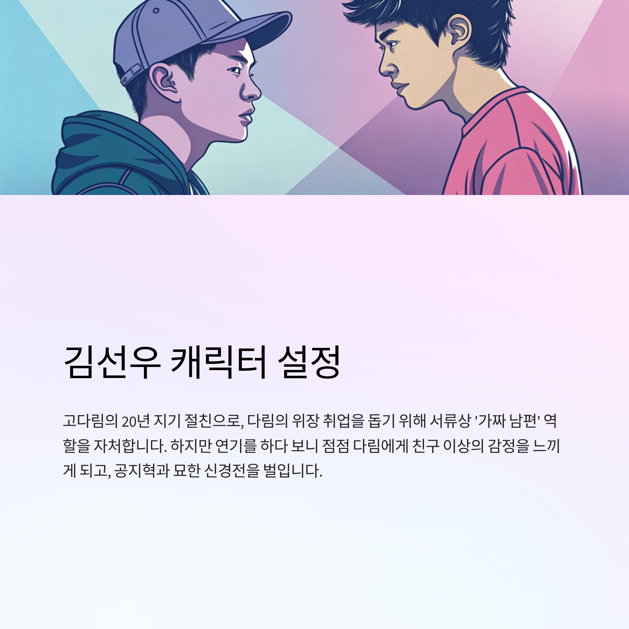 - 설정: 고다림의 20년 지기 절친으로, 다림의 위장 취업을 돕기 위해 서류상 '가짜 남편' 역할을 자처합니다. 하지만 연기를 하다 보니 점점 다림에게 친구 이상의 감정을 느끼게 되고, 공지혁과 묘한 신경전을 벌입니다.