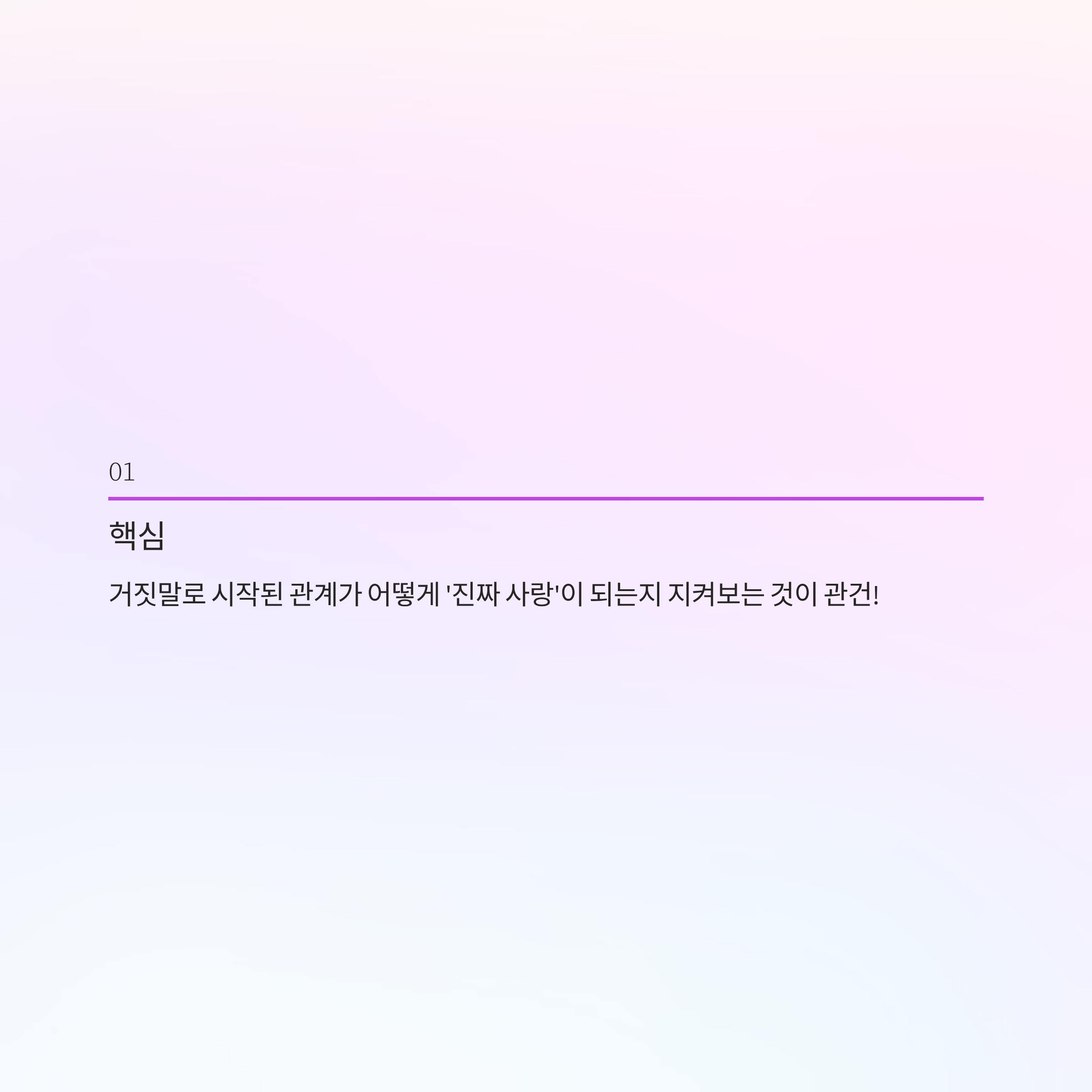 - 핵심: 거짓말로 시작된 관계가 어떻게 '진짜 사랑'이 되는지 지켜보는 것이 관건!