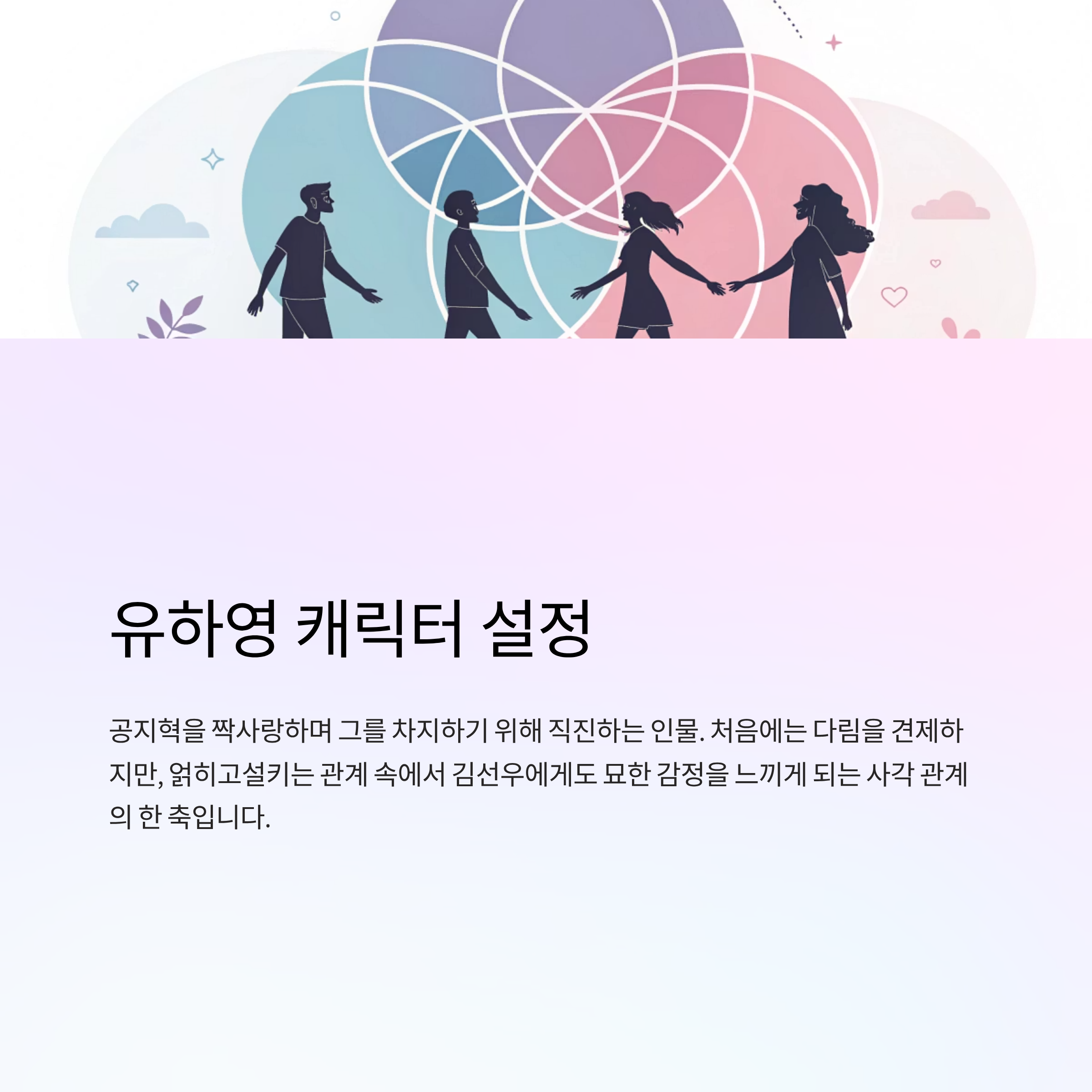 - 설정: 공지혁을 짝사랑하며 그를 차지하기 위해 직진하는 인물. 처음에는 다림을 견제하지만, 얽히고설키는 관계 속에서 김선우에게도 묘한 감정을 느끼게 되는 사각 관계의 한 축입니다.