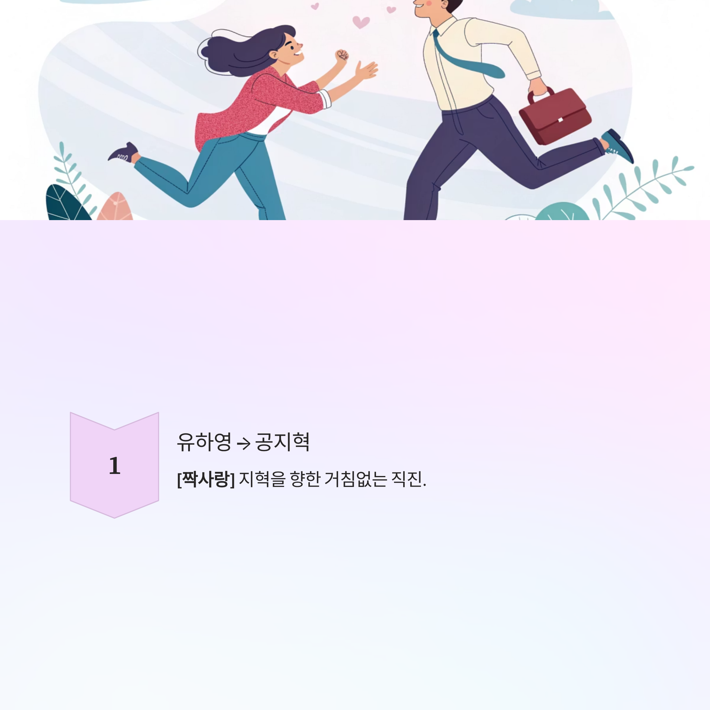 - 유하영 → 공지혁: [짝사랑] 지혁을 향한 거침없는 직진.