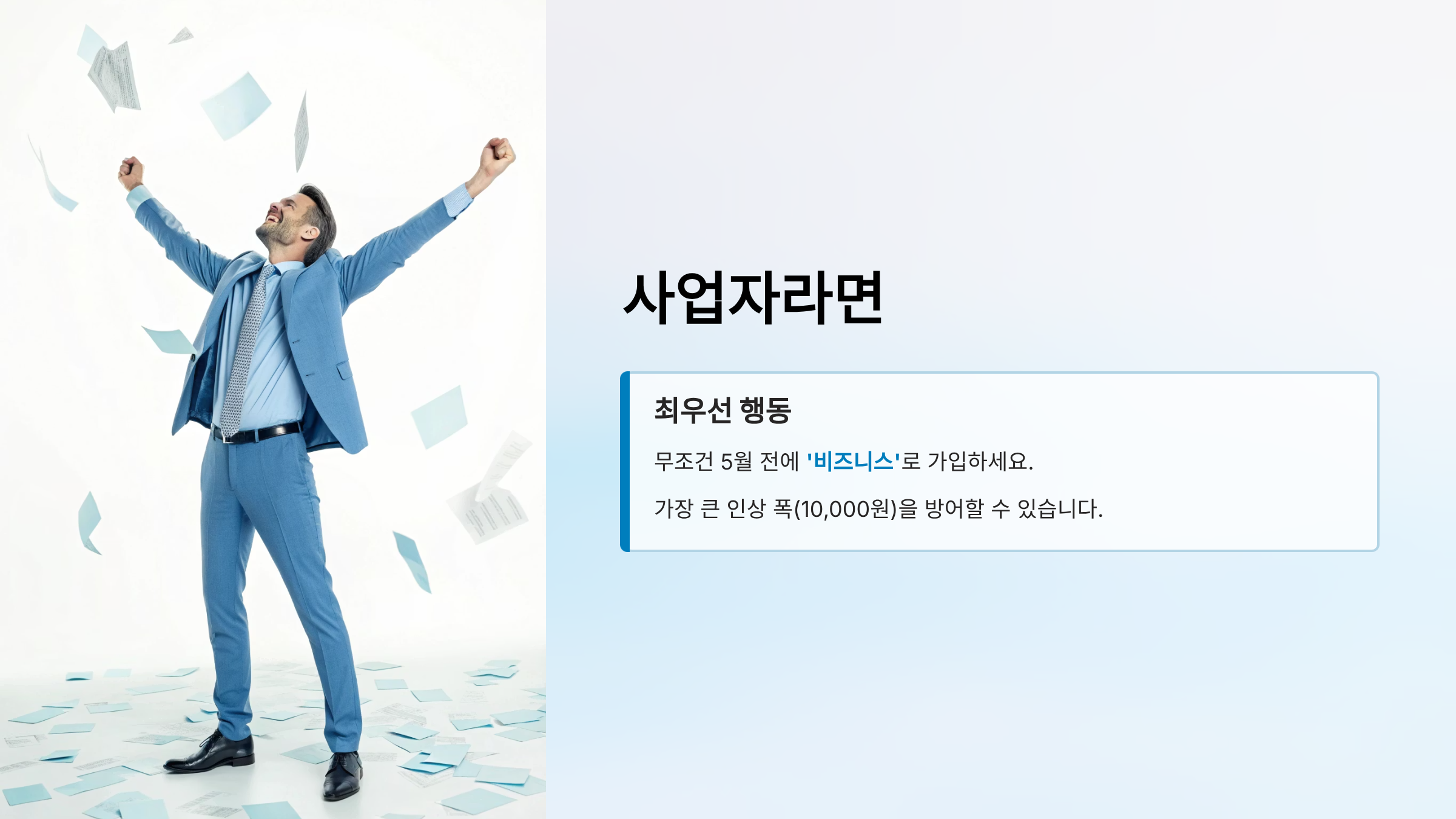 - 사업자라면: 무조건 5월 전에 '비즈니스'로 가입하세요. (가장 큰 인상 폭 방어)