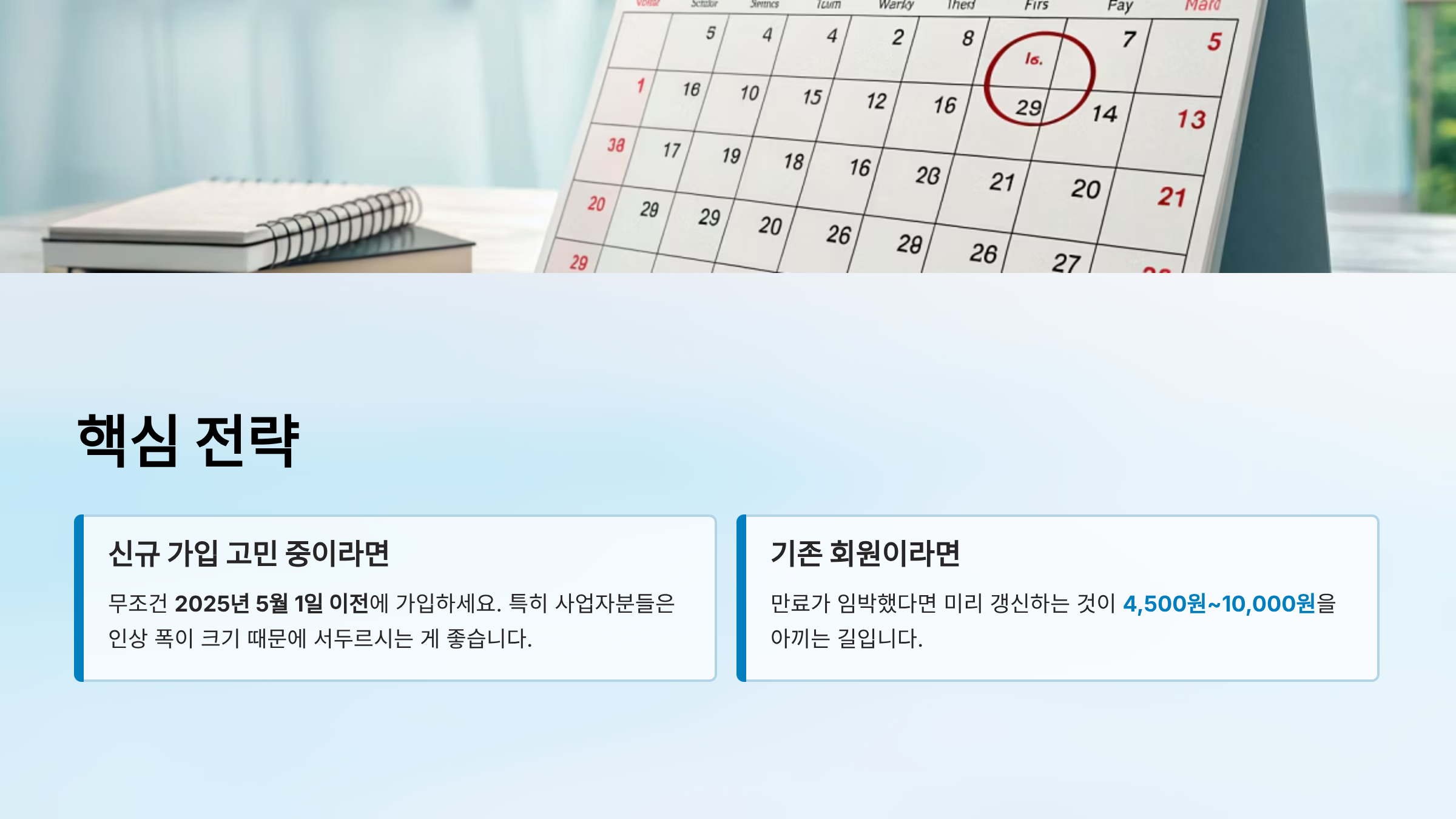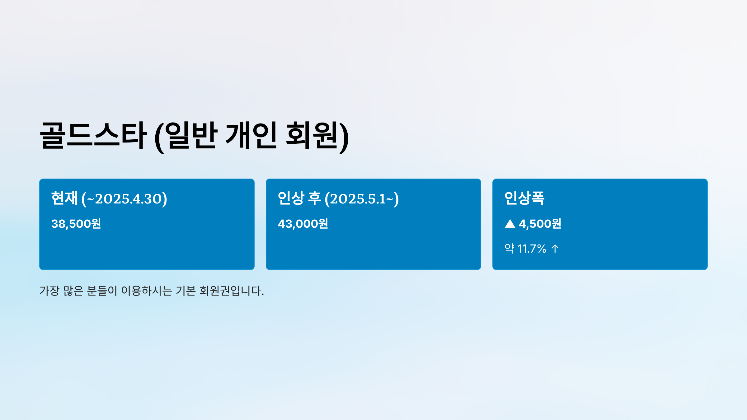 - 인상 후 (2025.5.1~): 43,000원 (▲ 4,500원 인상, 약 11.7% ↑)