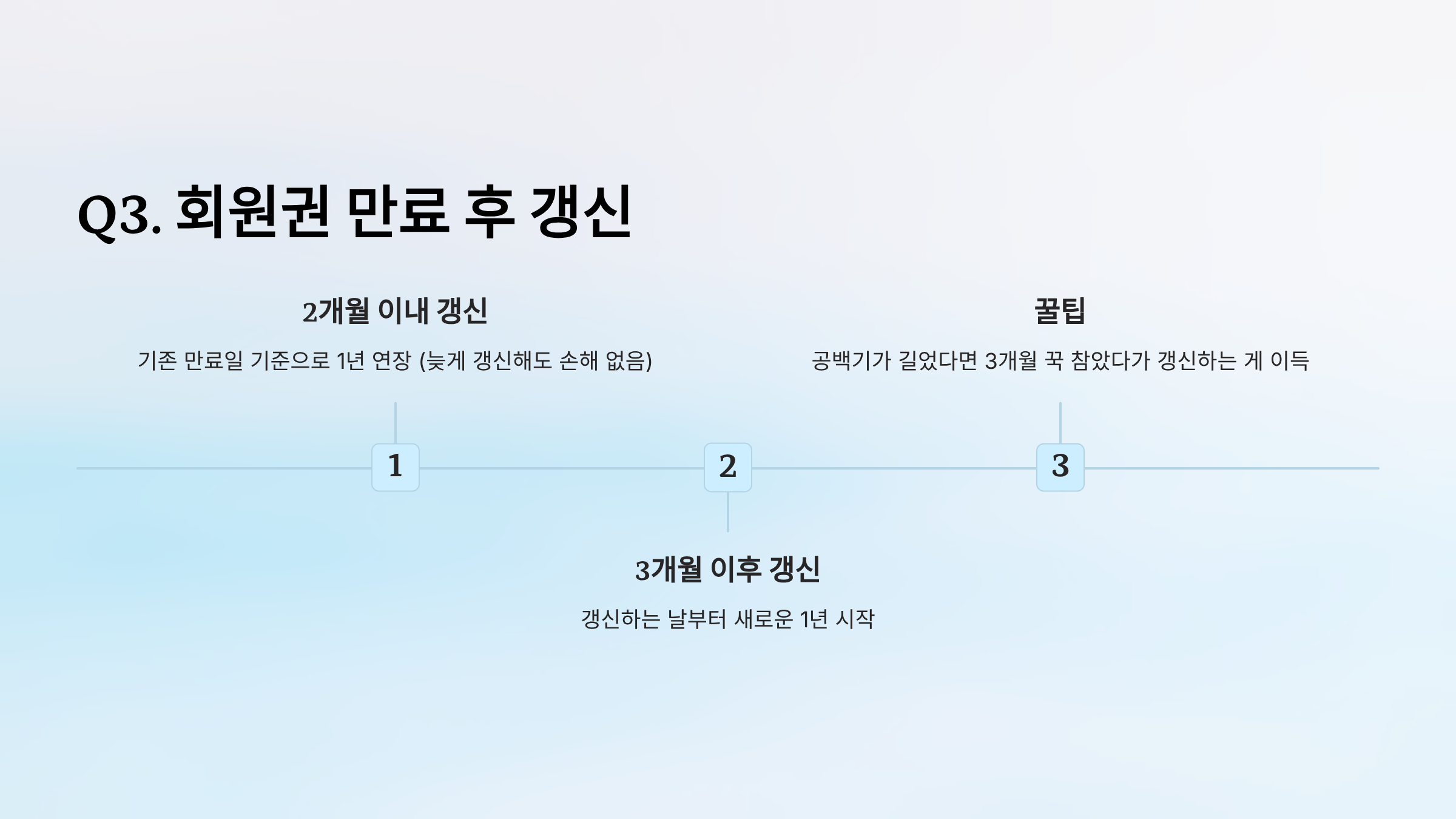 Q3. 회원권 만료일이 지났는데 갱신하면 어떻게 되나요?