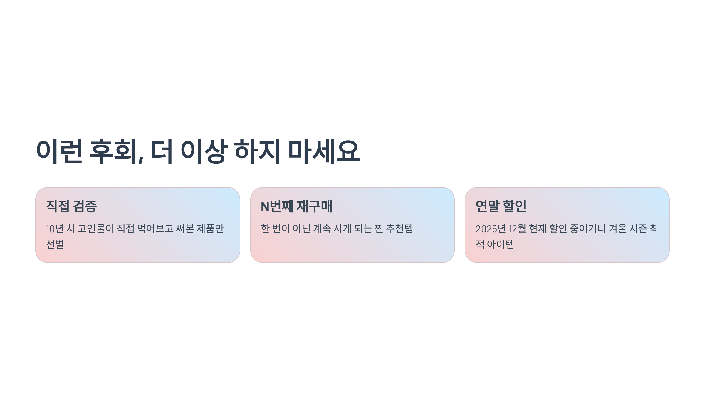 이런 후회, 더 이상 하지 않으셔도 됩니다. 10년 차 코스트코 고인물인 제가 직접 먹어보고, 써보고, N번째 재구매하고 있는 '찐' 추천템만 엄선했습니다. 특히 2025년 12월 현재, 연말 할인 행사 중이거나 겨울 시즌에 딱 맞는 '가성비 갑' 아이템들로 꽉꽉 채웠습니다.