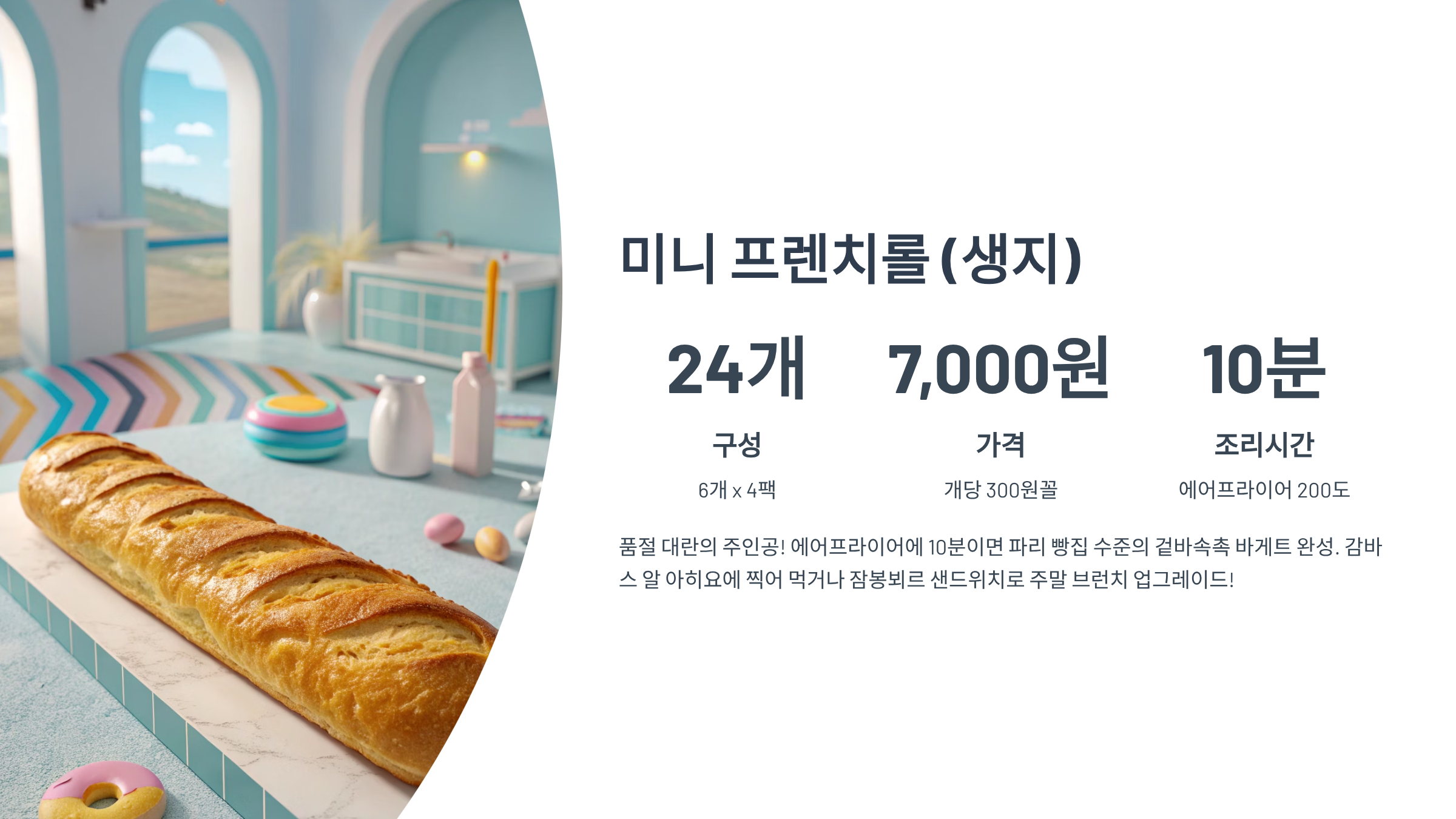 - 먹는 법: 감바스 알 아히요에 찍어 먹거나, 반 갈라서 잠봉뵈르 샌드위치 만들어 드세요. 주말 브런치가 업그레이드됩니다.