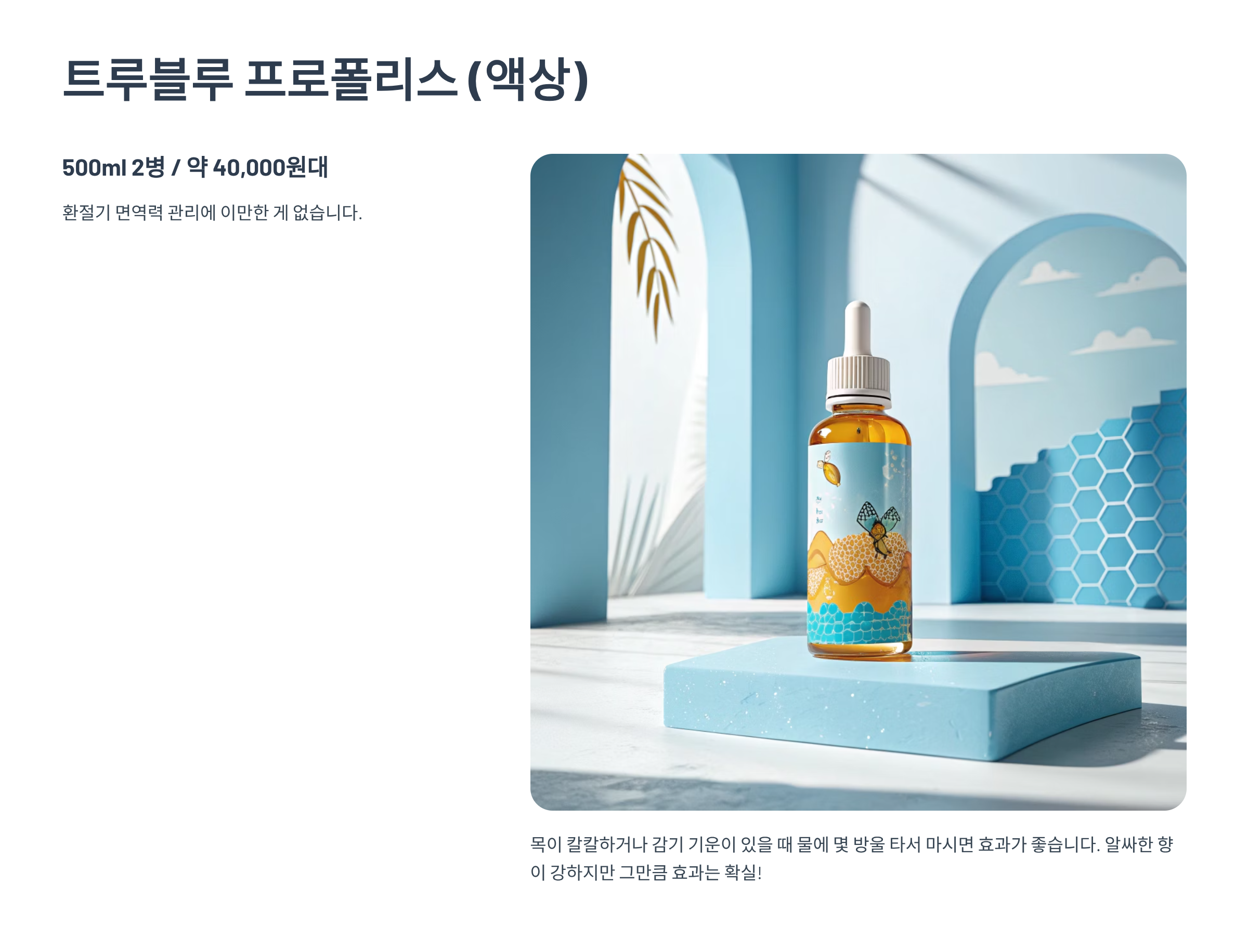 - 추천 이유: 환절기 면역력 관리에 이만한 게 없습니다. 목이 칼칼하거나 감기 기운이 있을 때 물에 몇 방울 타서 마시면 효과가 좋습니다. 특유의 알싸한 향이 강하지만 그만큼 효과는 확실하다는 평이 많습니다.