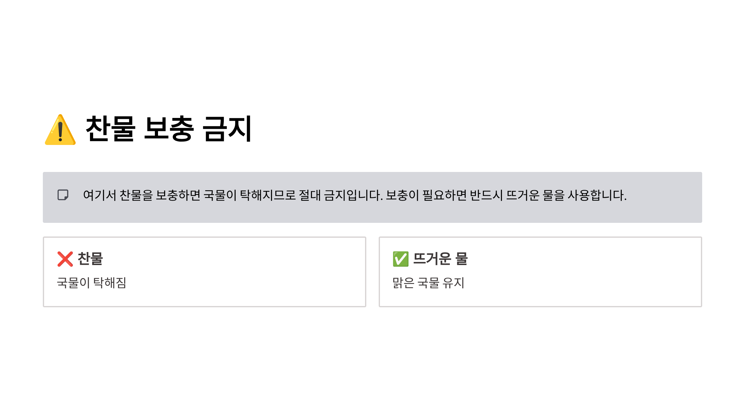 찬물 보충 금지, 거품과 기름 수시는 필수