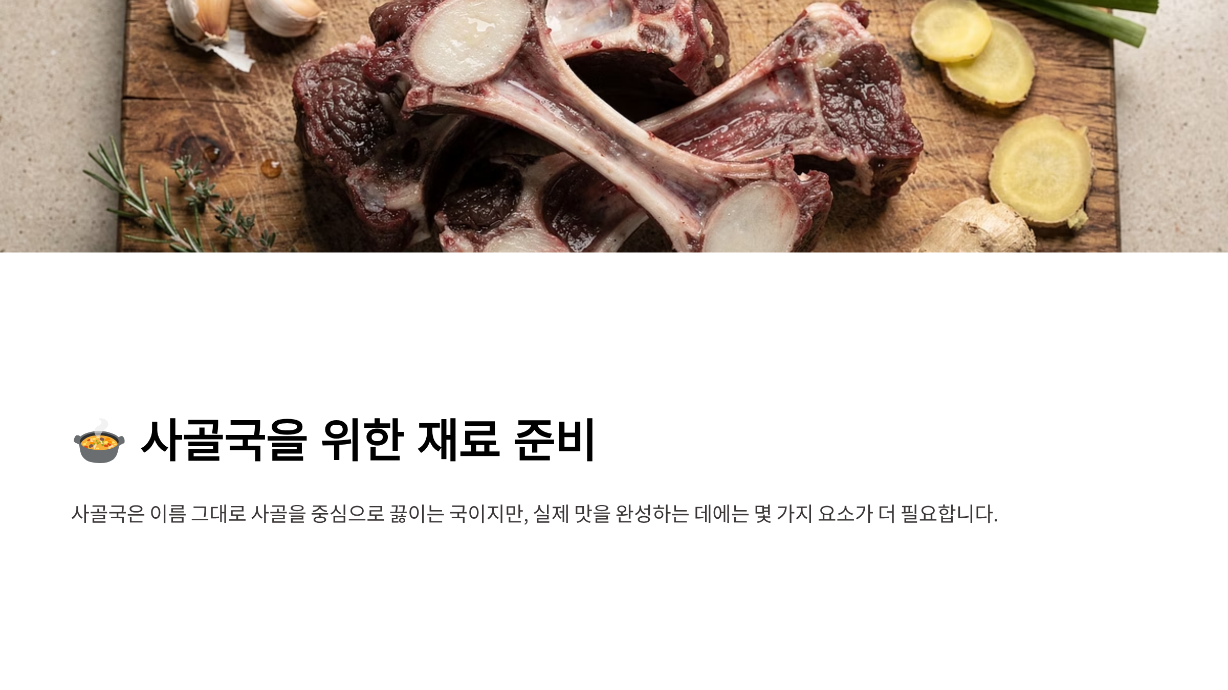 사골국은 이름 그대로 사골을 중심으로 끓이는 국이지만, 실제 맛을 완성하는 데에는 몇 가지 요소가 더 필요합니다.