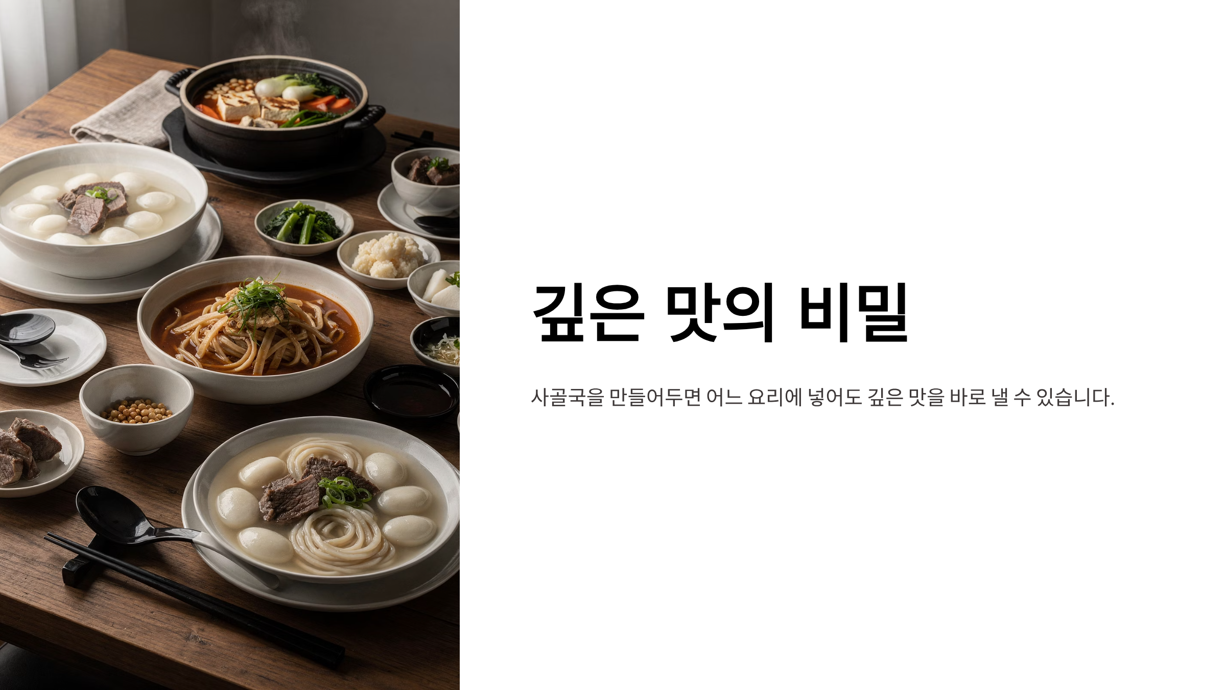 사골국을 만들어두면 어느 요리에 넣어도 깊은 맛을 바로 낼 수 있습니다.