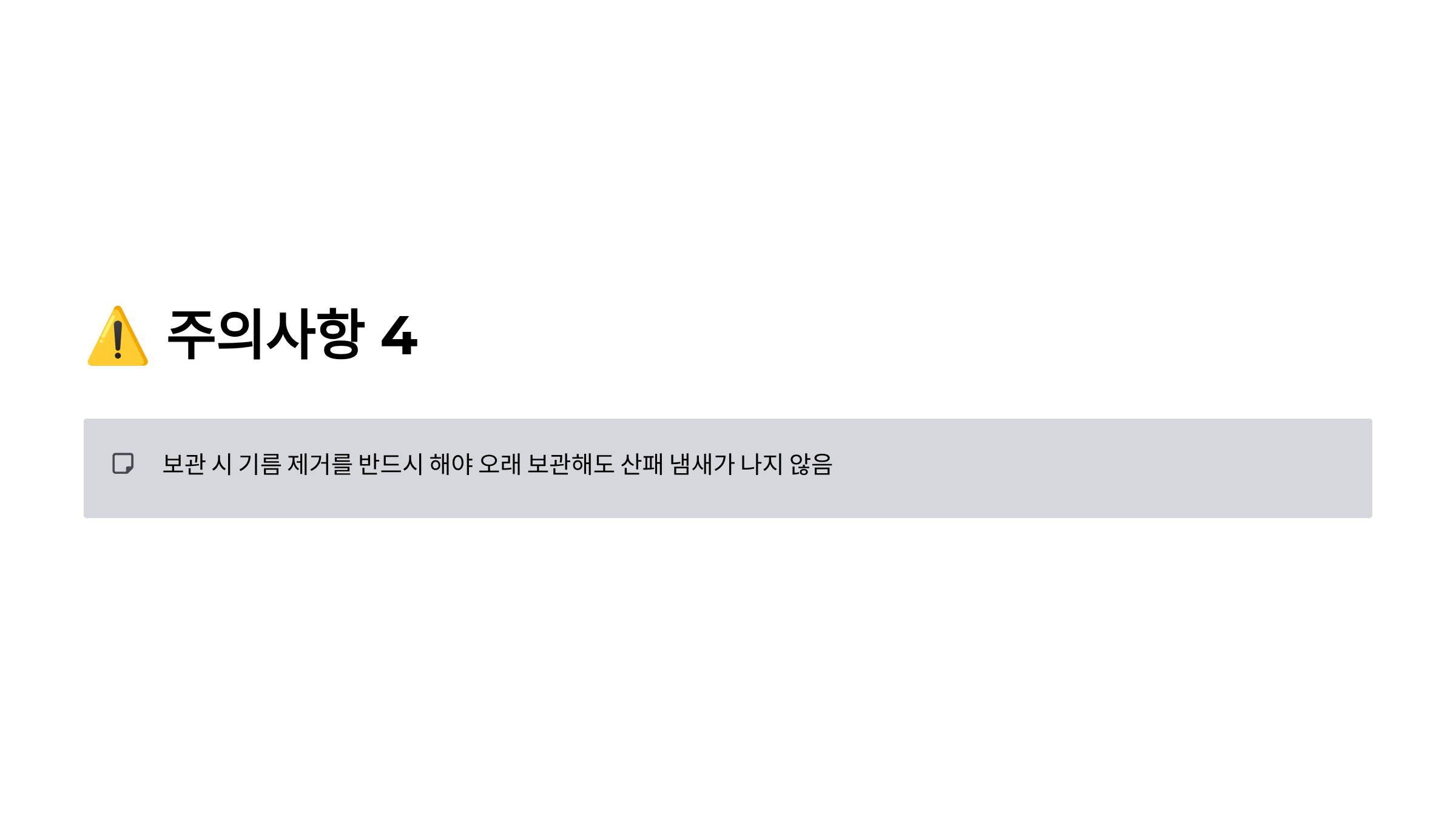 보관 시 기름 제거를 반드시 해야 오래 보관해도 산패 냄새가 나지 않음