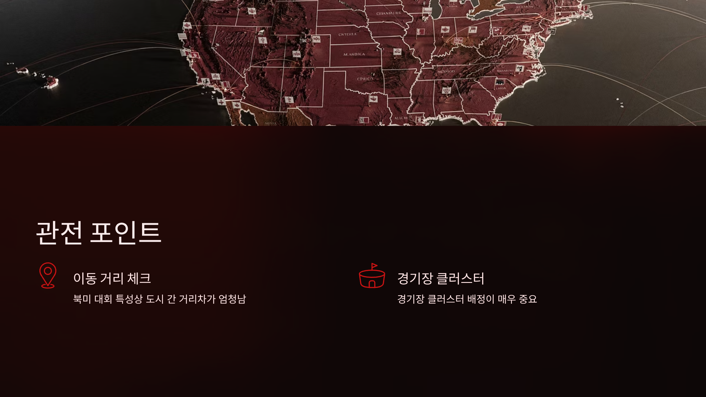 북미 대회 특성상 도시 간 거리차가 엄청남