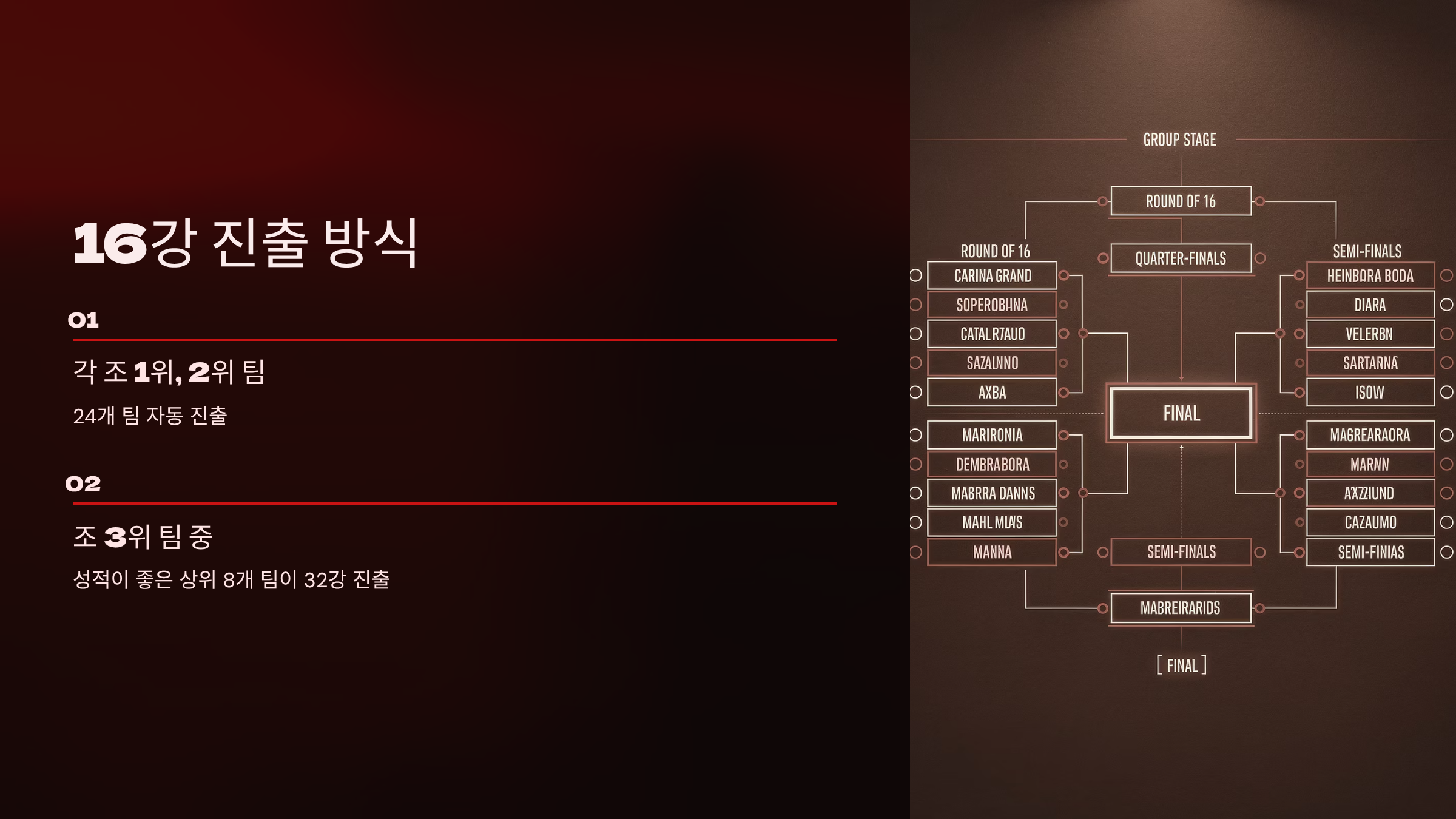 각 조 1위, 2위 팀(24개 팀) 자동 진출
