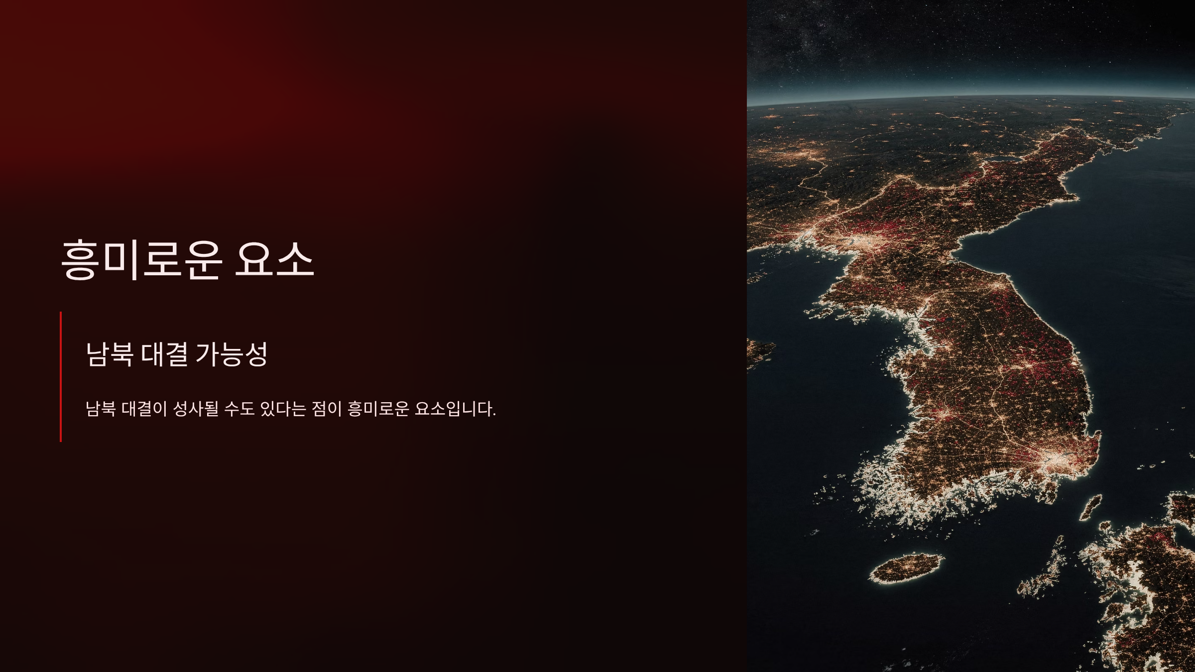 남북 대결이 성사될 수도 있다는 점이 흥미로운 요소입니다.