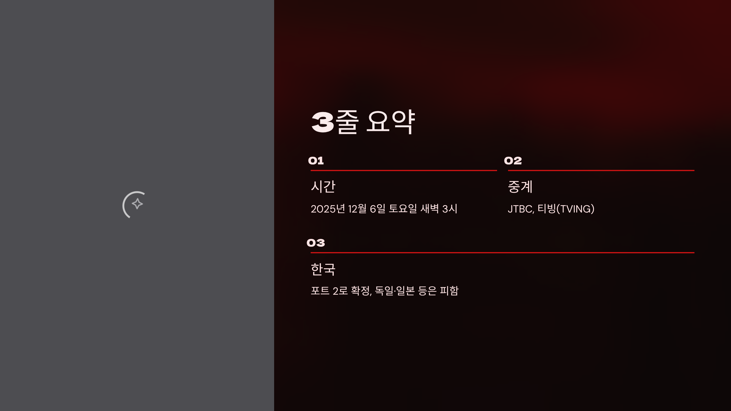 주말 새벽 3시라는 점이 그나마 다행입니다. 불타는 금요일을 보내고 조금 늦게 잠들거나, 일찍 일어나서 결과를 확인하기 좋은 시간대입니다.