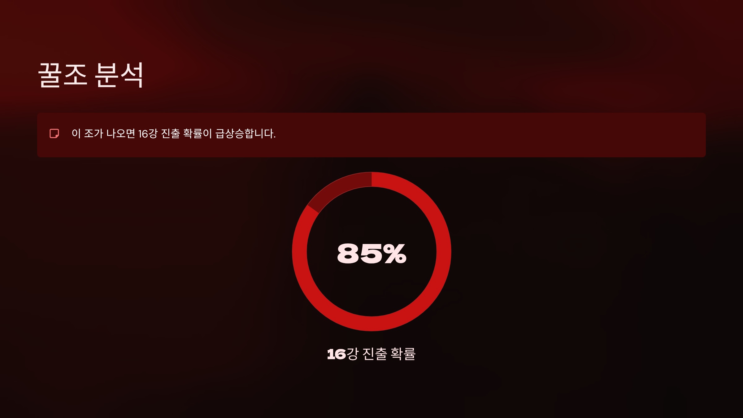 이 조가 나오면 16강 진출 확률이 급상승합니다.
