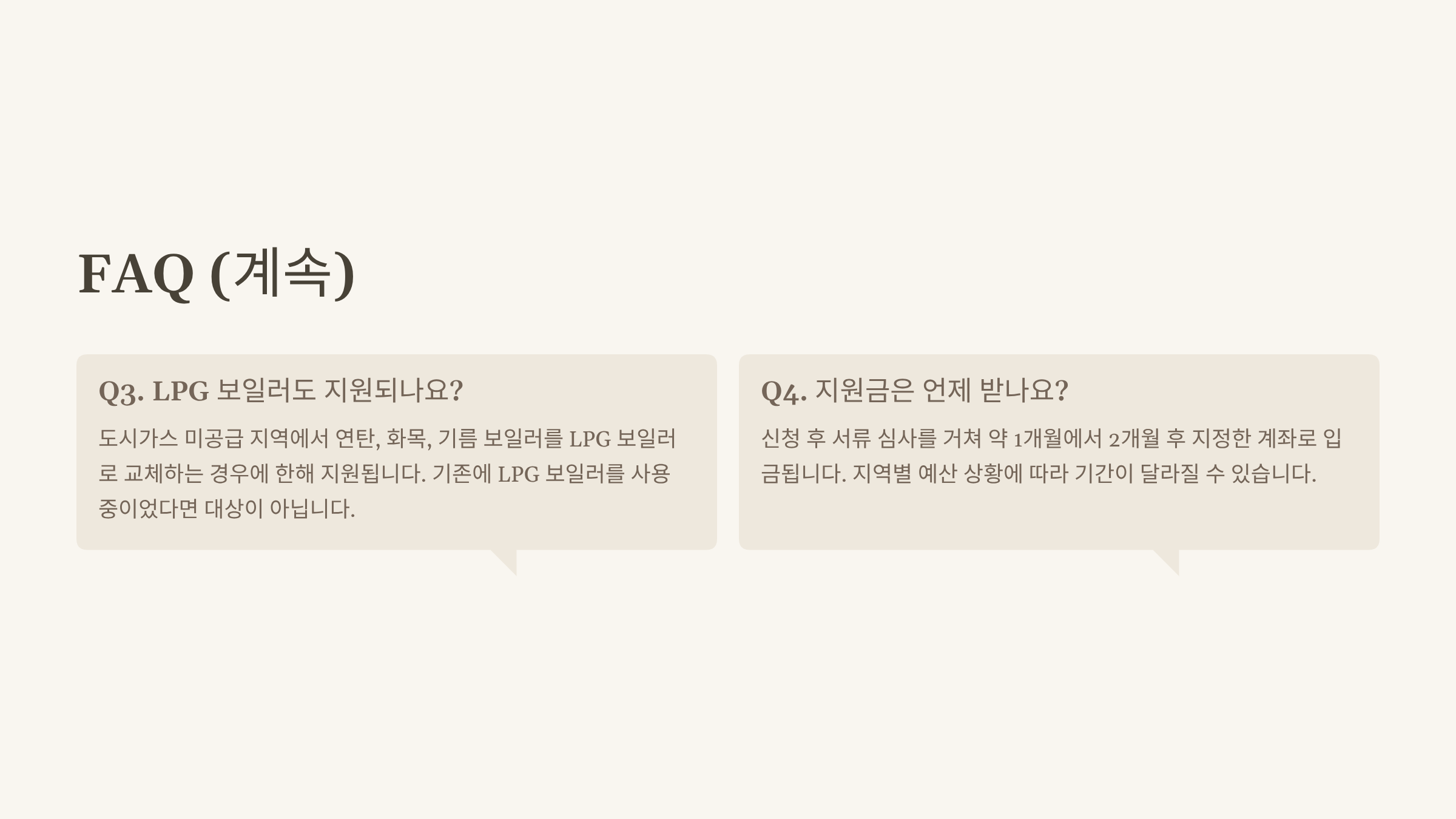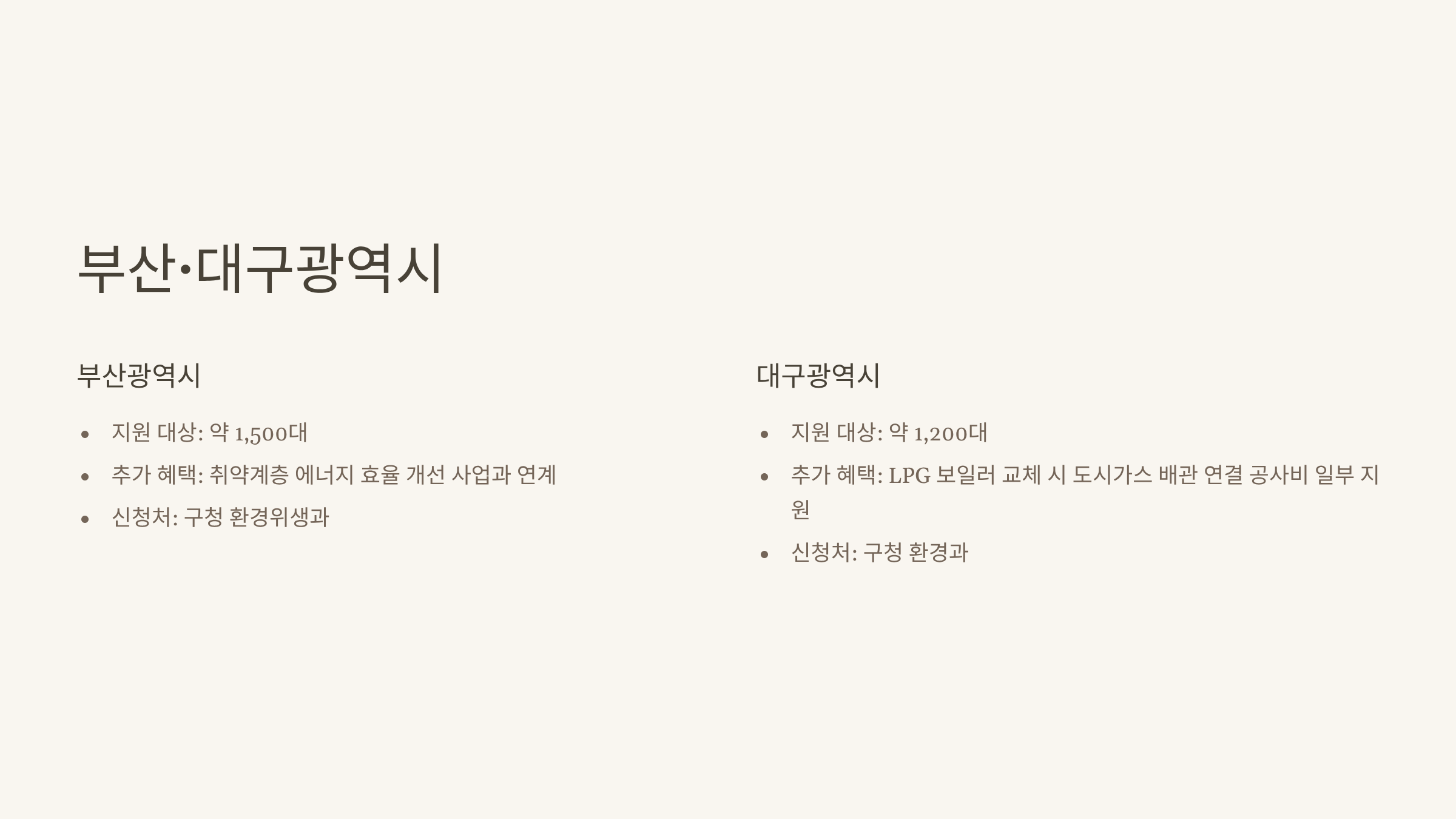 추가 혜택: LPG 보일러 교체 시 도시가스 배관 연결 공사비 일부 지원