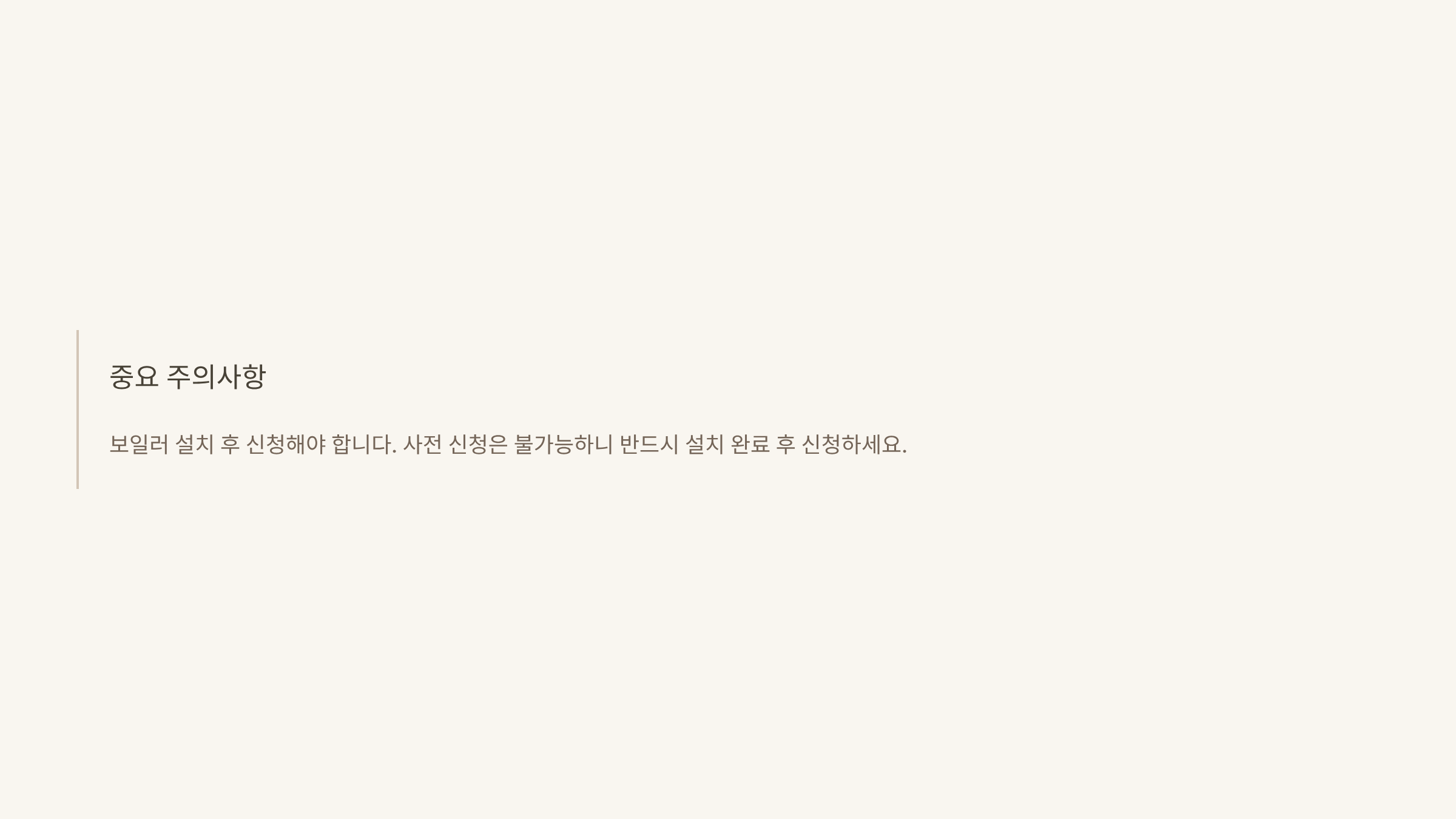 보일러 설치 후 신청해야 합니다. 사전 신청은 불가능하니 반드시 설치 완료 후 신청하세요.
