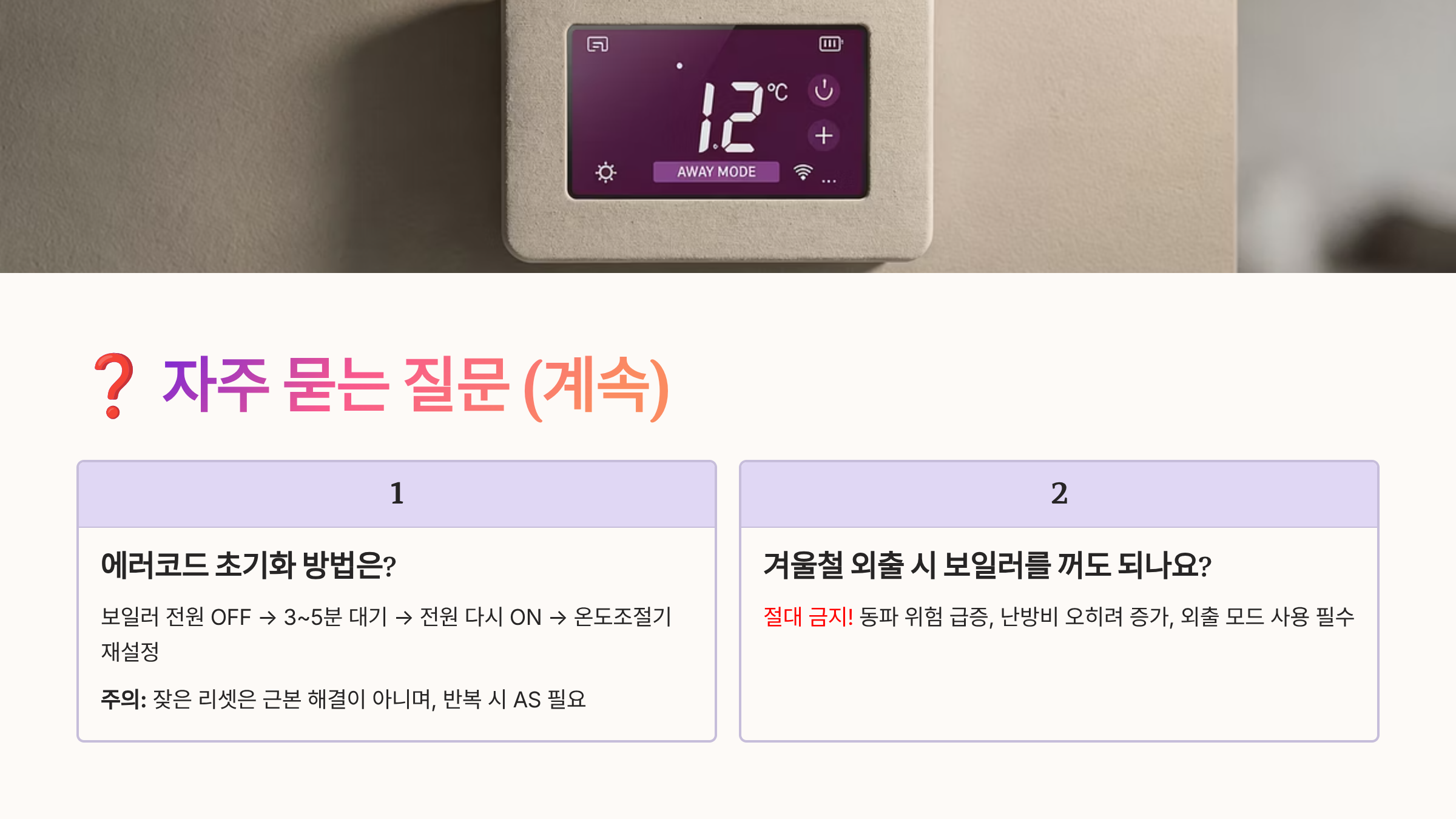 - 보일러 전원 항상 ON 유지