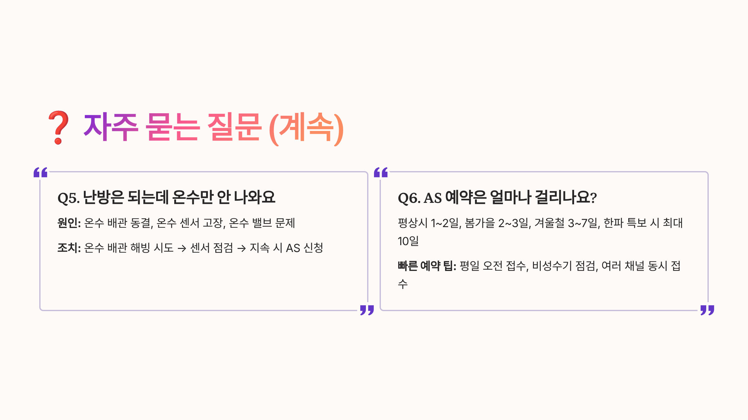 자가 조치로 해결 가능한 부분은 직접 처리하고, 전문가 도움이 필요한 경우 주저 없이 AS를 신청하세요. 정기적인 점검과 관리로 보일러 수명을 연장하고 에너지 효율도 높일 수 있습니다.