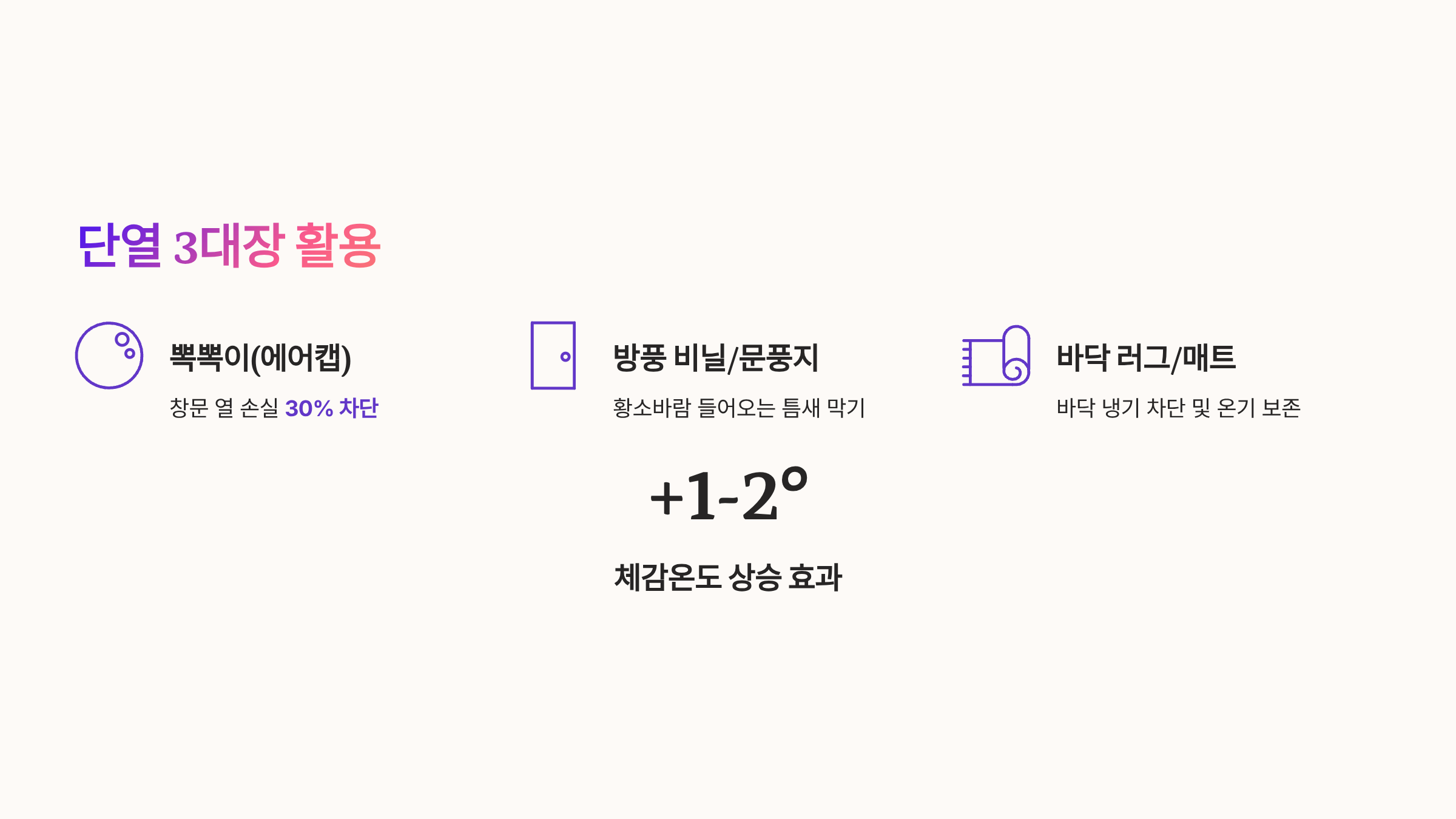 - 뽁뽁이(에어캡): 창문 열 손실 30% 차단