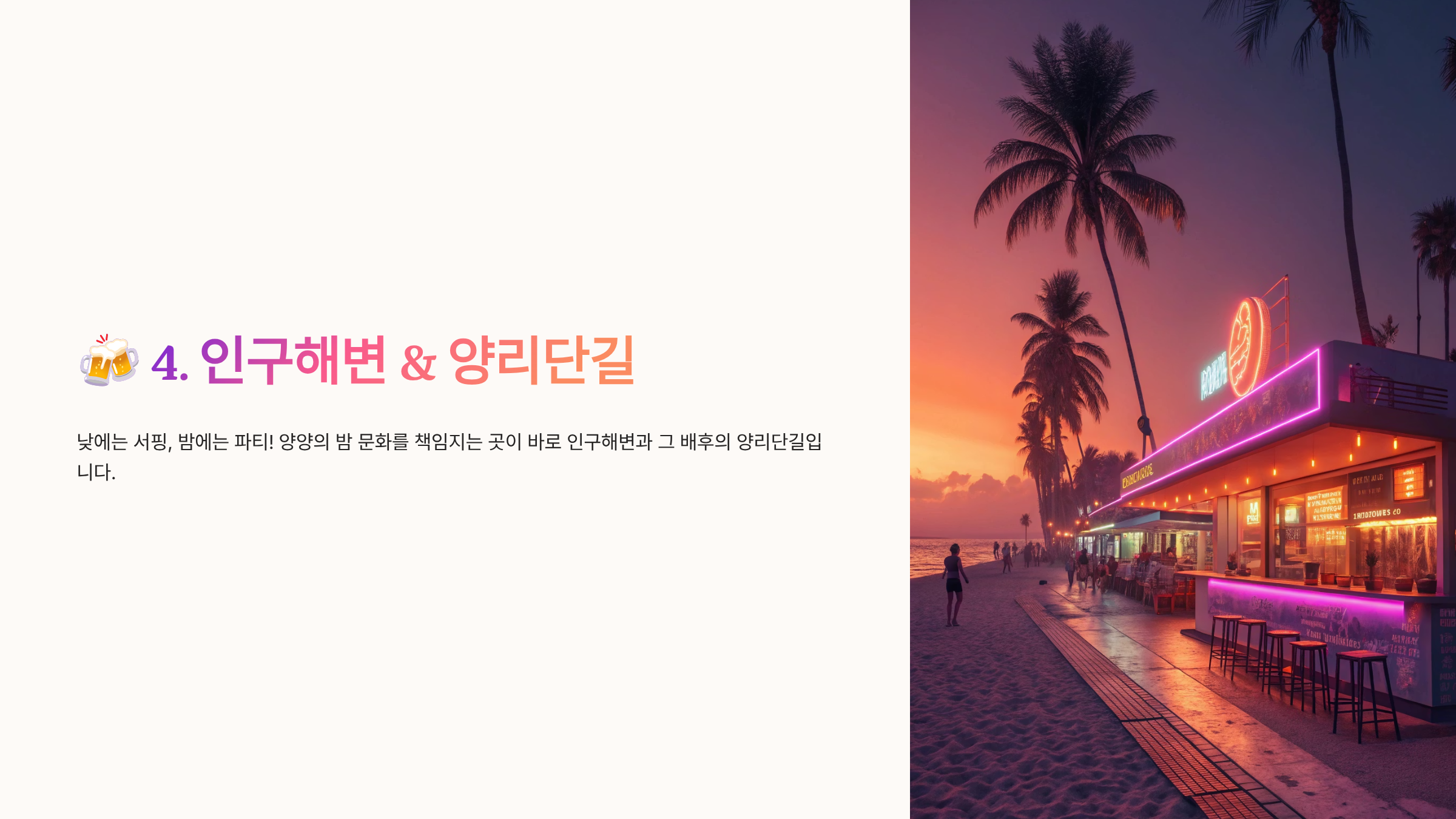 🍻 4. MZ들의 밤 문화 성지: 인구해변 & 양리단길