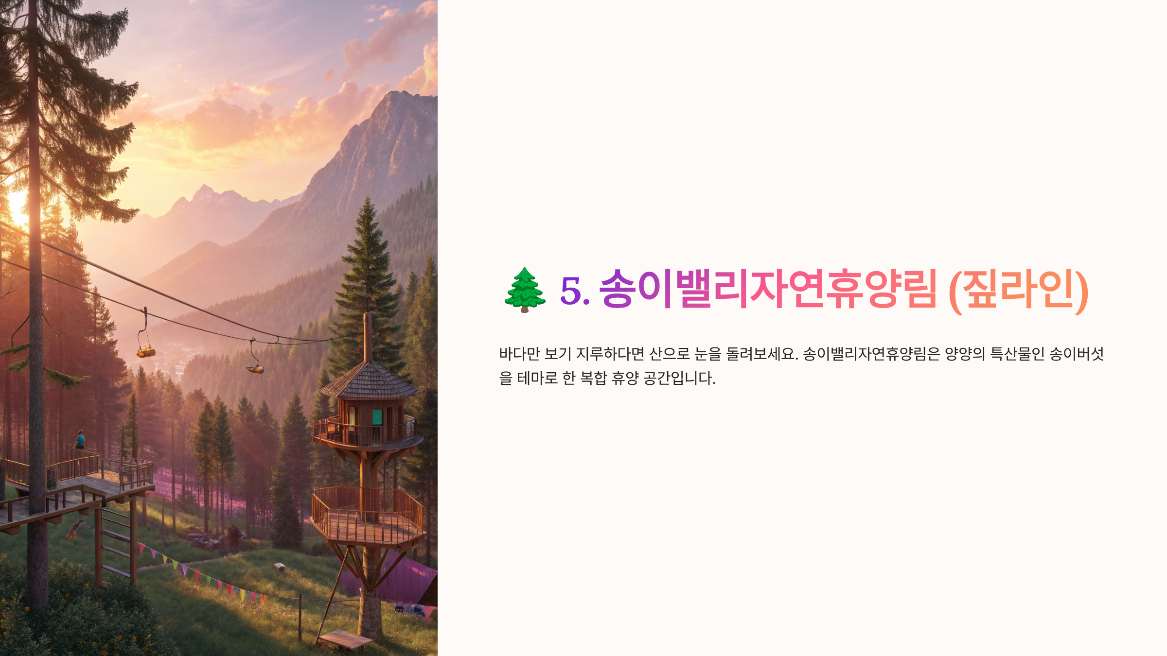 오늘 소개해 드린 BEST 10 리스트와 꿀팁들을 참고하셔서, 2025년 양양 여행을 누구보다 알차고 행복하게 즐기시길 바랍니다.