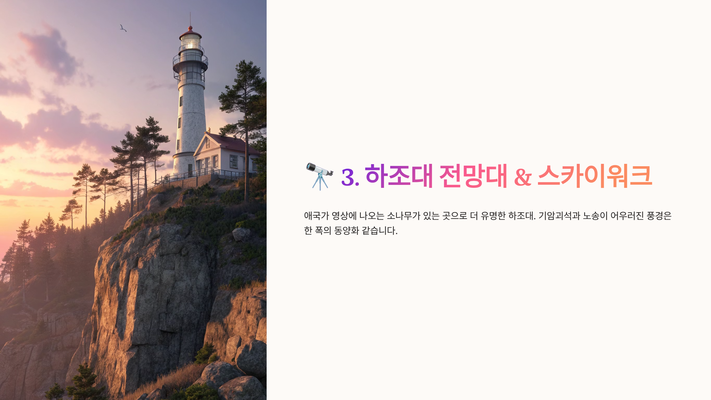 🔭 3. 인생샷 명소: 하조대 전망대 & 스카이워크