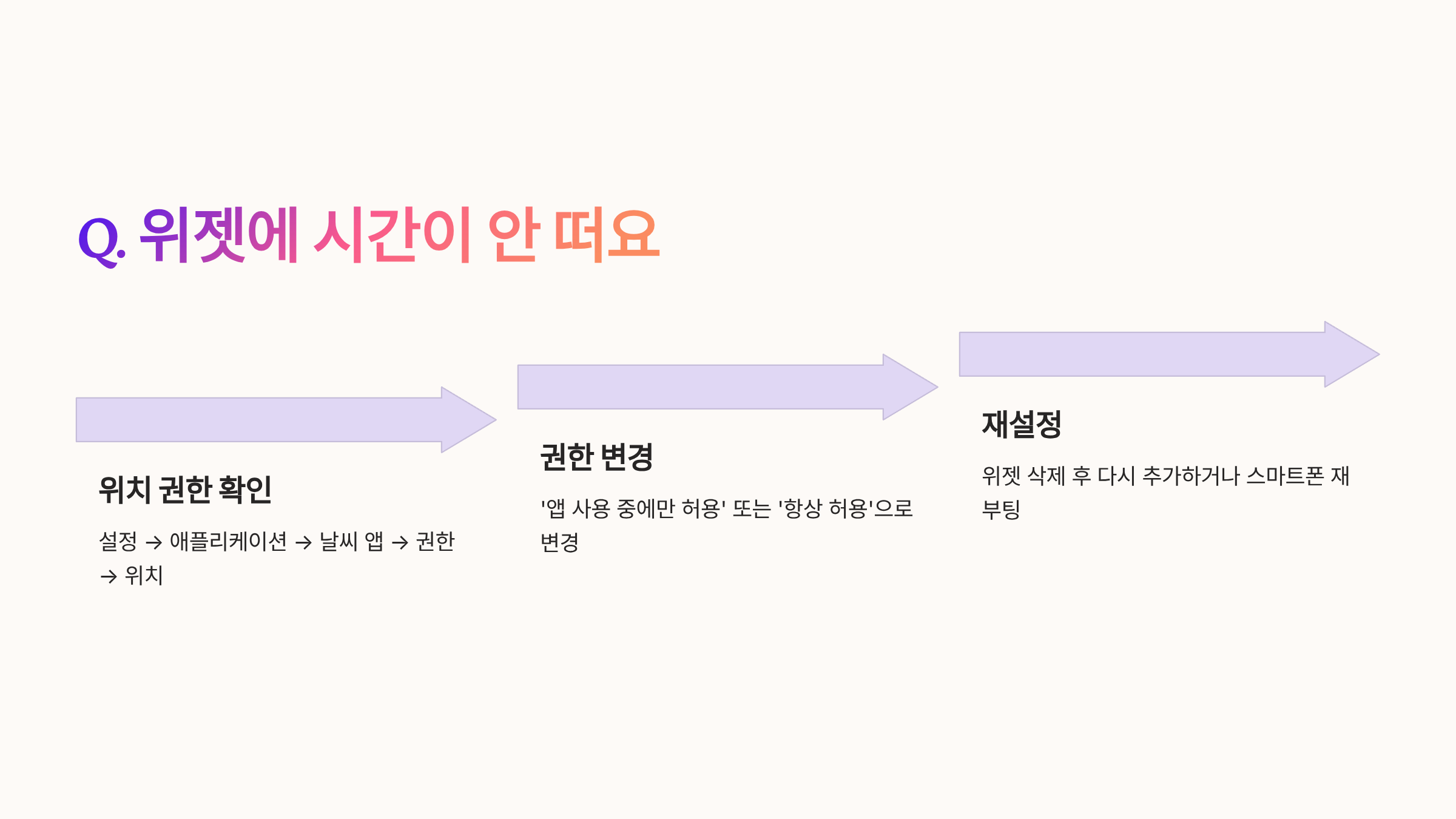 Q. 위젯에 시간이 안 뜨거나 엉뚱한 지역이 나와요.