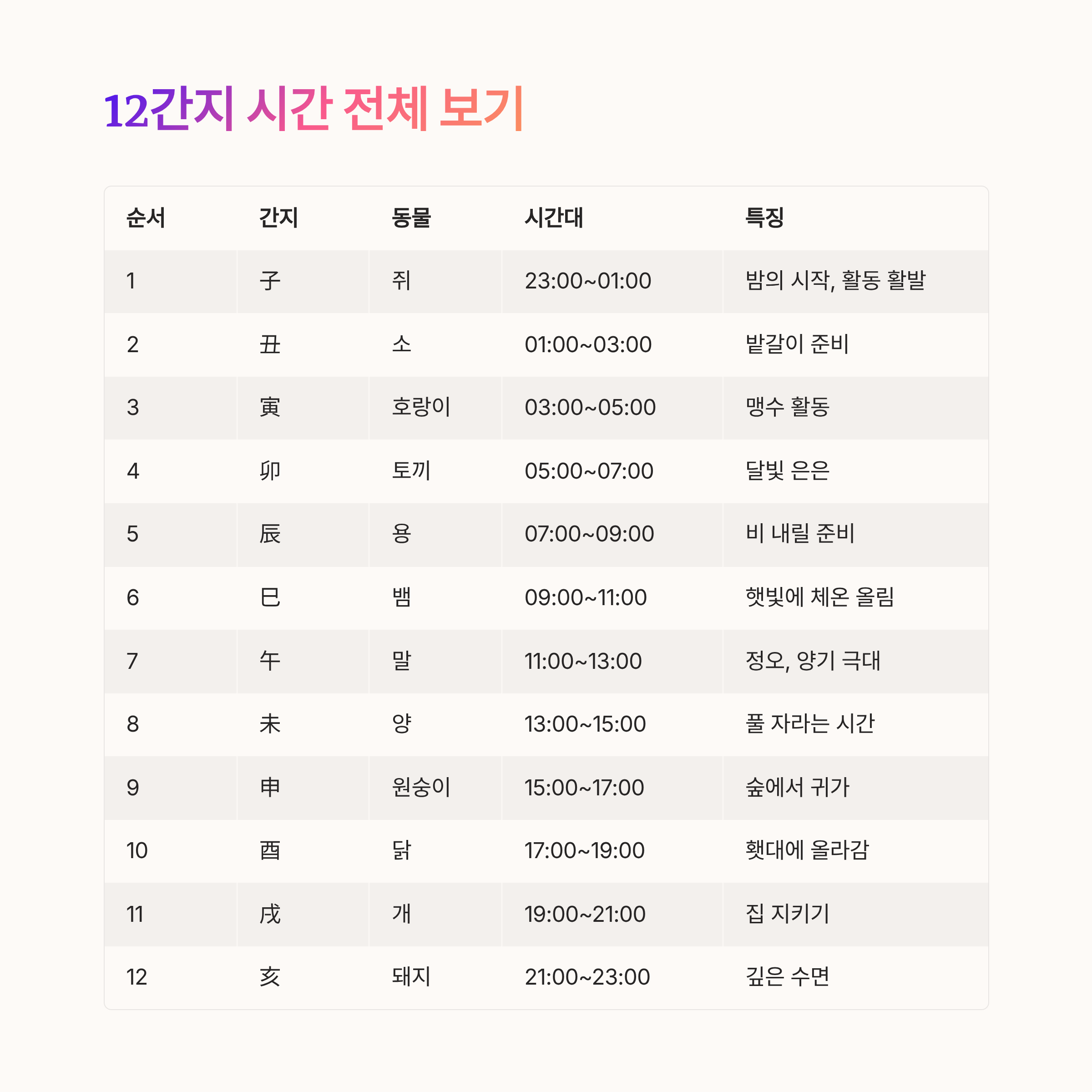 2. 12간지 시간 순서 및 시간대별 상세 해석