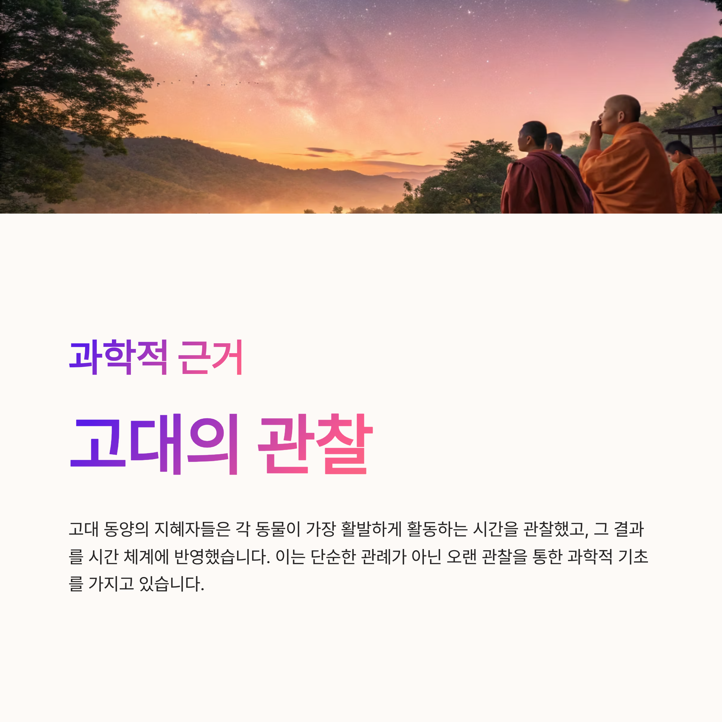한국의 전통 수행 문화에서도 12간지 시간을 중요하게 여깁니다: