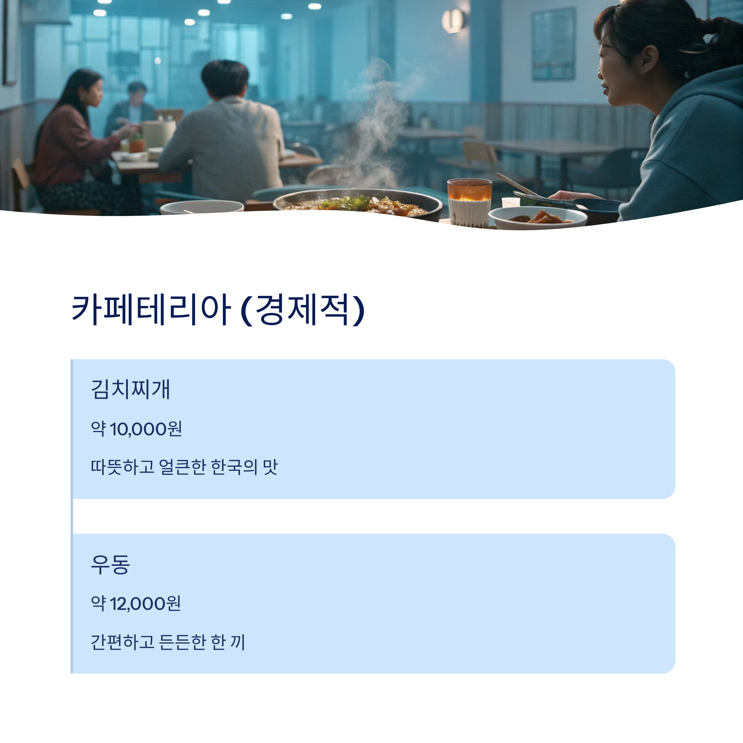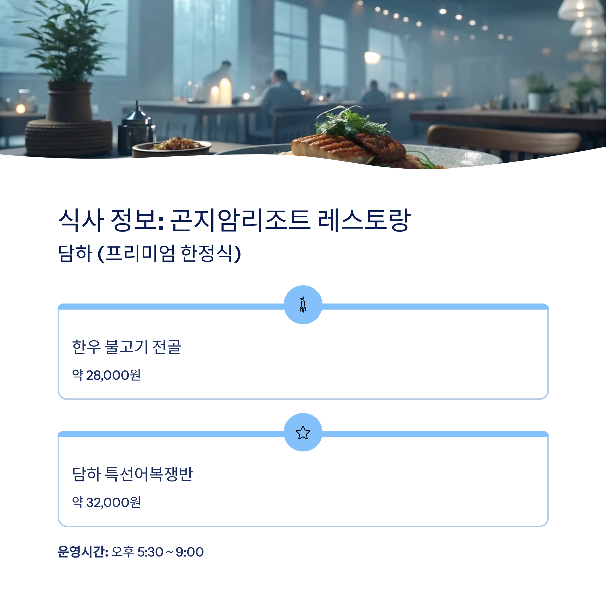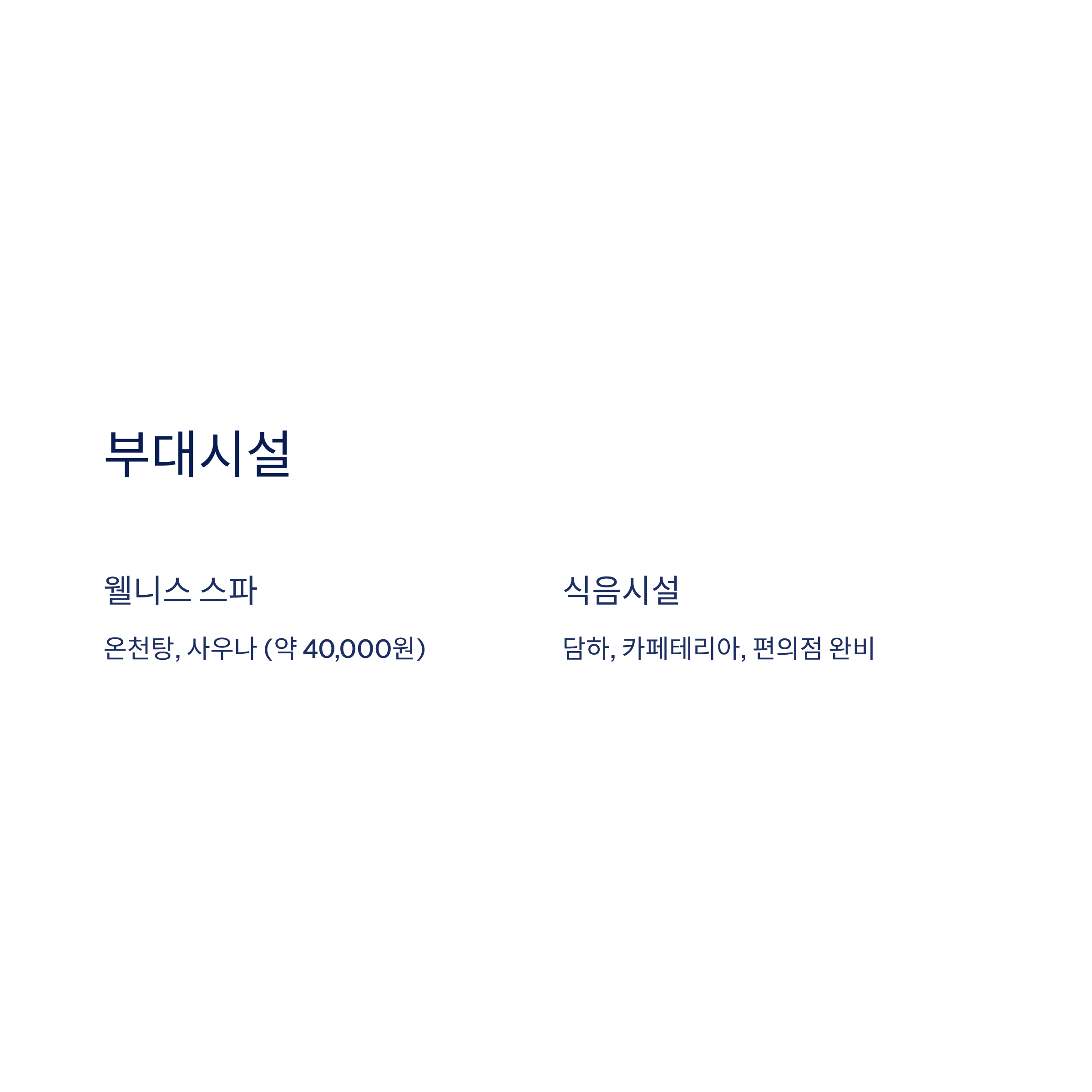 - 식음시설: 담하, 카페테리아, 편의점 완비