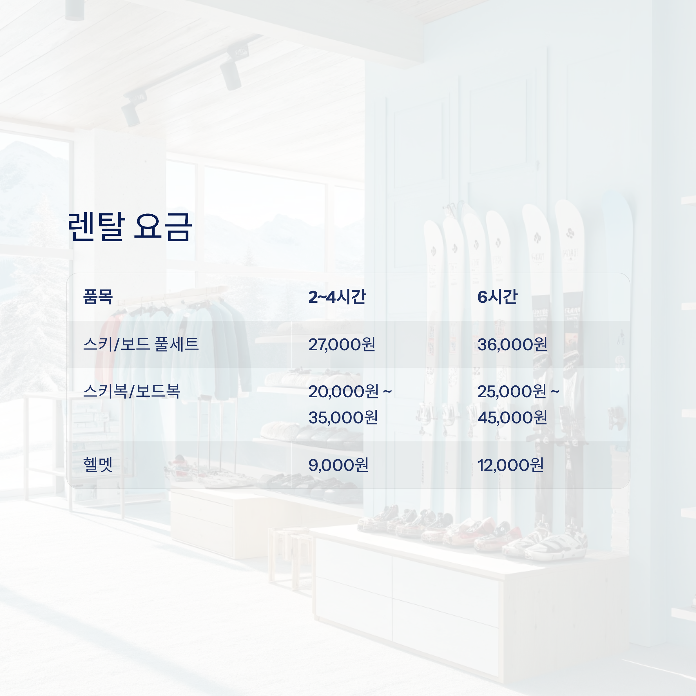 | 스키/보드 풀세트 | 27,000원 | 36,000원 |