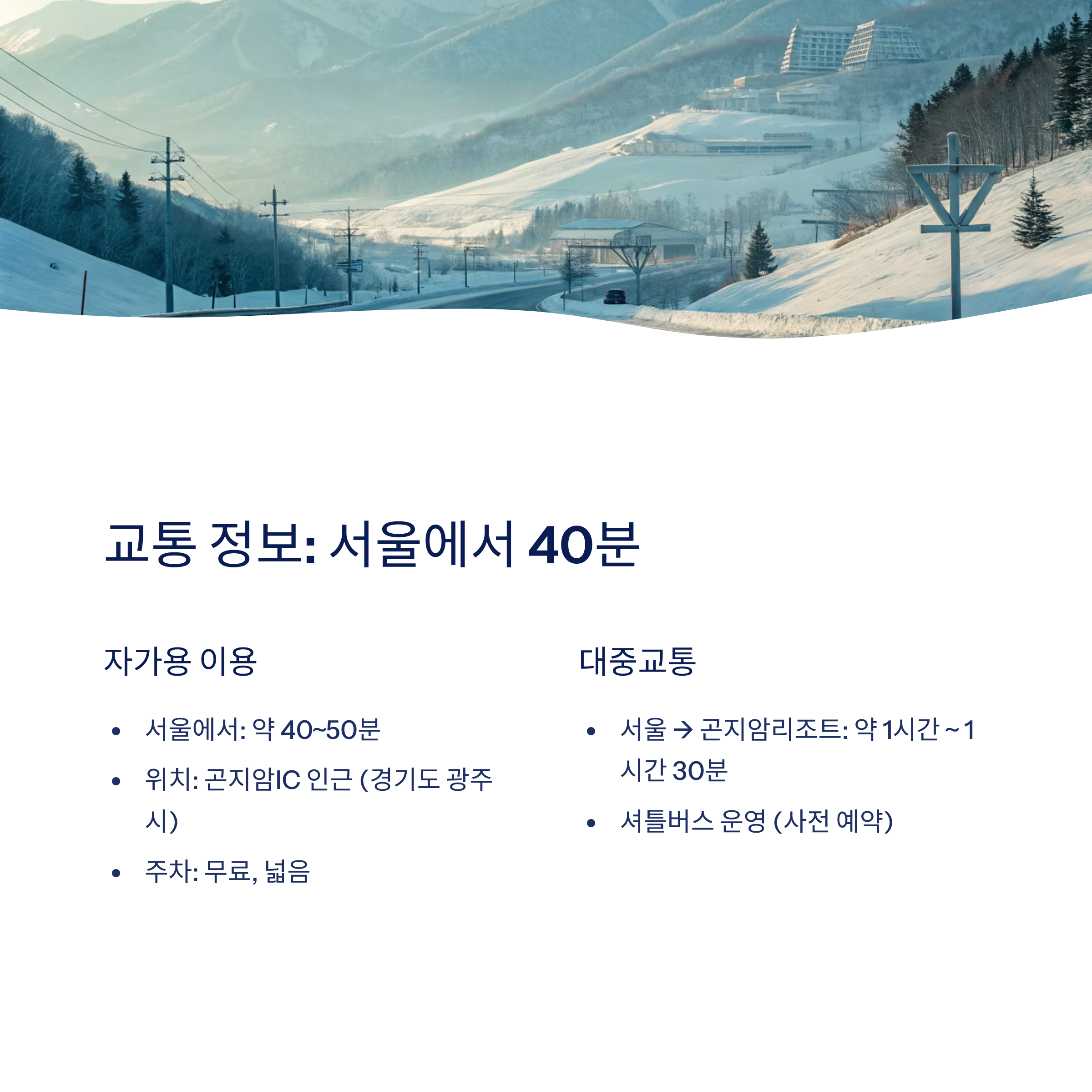- 서울 → 곤지암리조트: 약 1시간 ~ 1시간 30분
