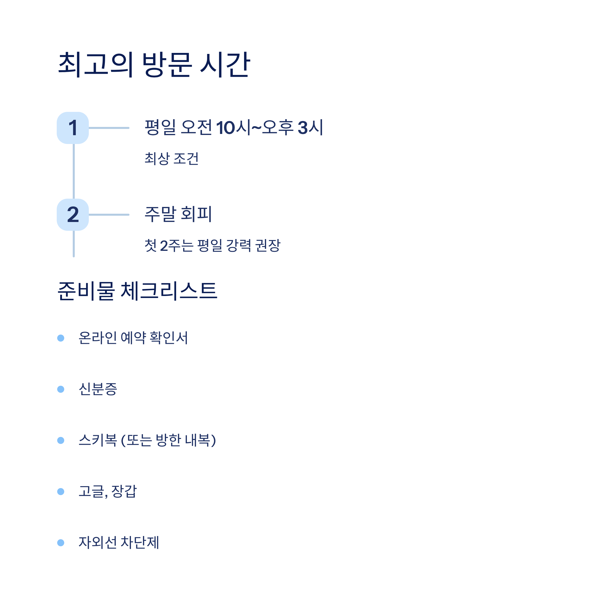 - 주말 회피: 첫 2주는 평일 강력 권장