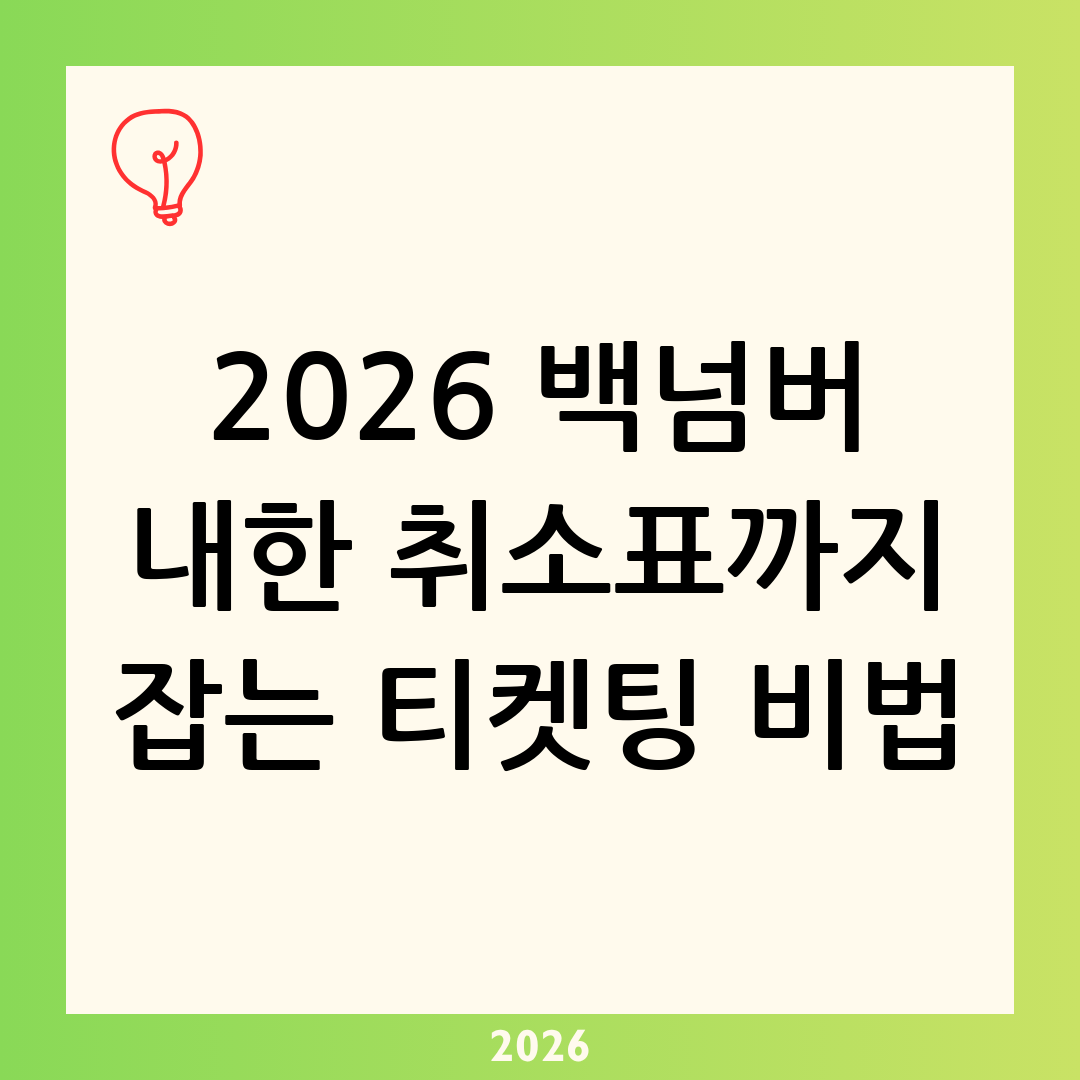 2026 백넘버 내한 티켓팅에서 중요한 건 “운”만이 아닙니다. 사전 세팅으로 실수를 없애고, 오픈 당일엔 결제까지 무사고로 밀어붙이고, 실패해도 취소표 패턴을 반복 공략하면 확률은 실제로 올라갑니다.