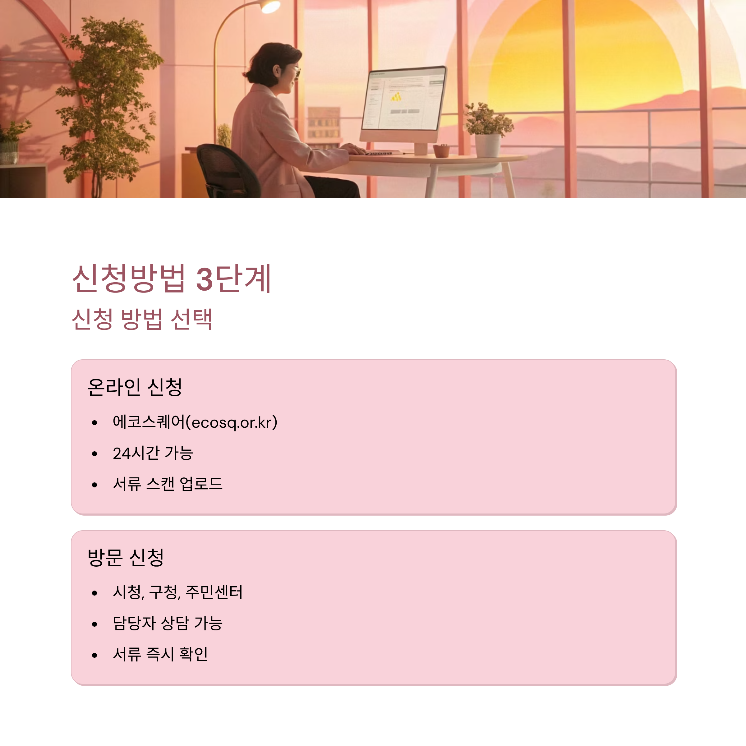- 에코스퀘어(ecosq.or.kr) 또는 지자체 홈페이지에서 직접 신청