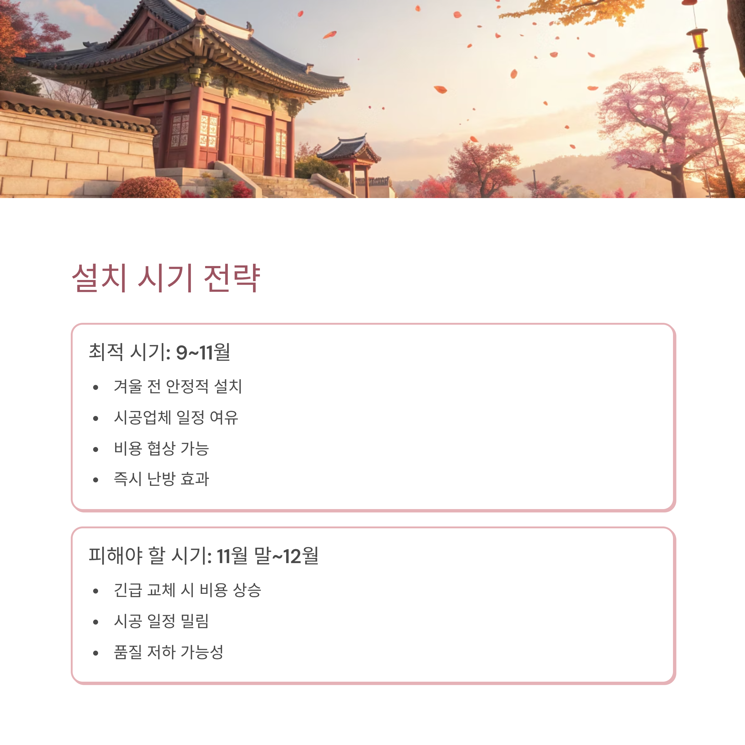 - 겨울 난방 시즌 전에 안정적으로 설치 가능