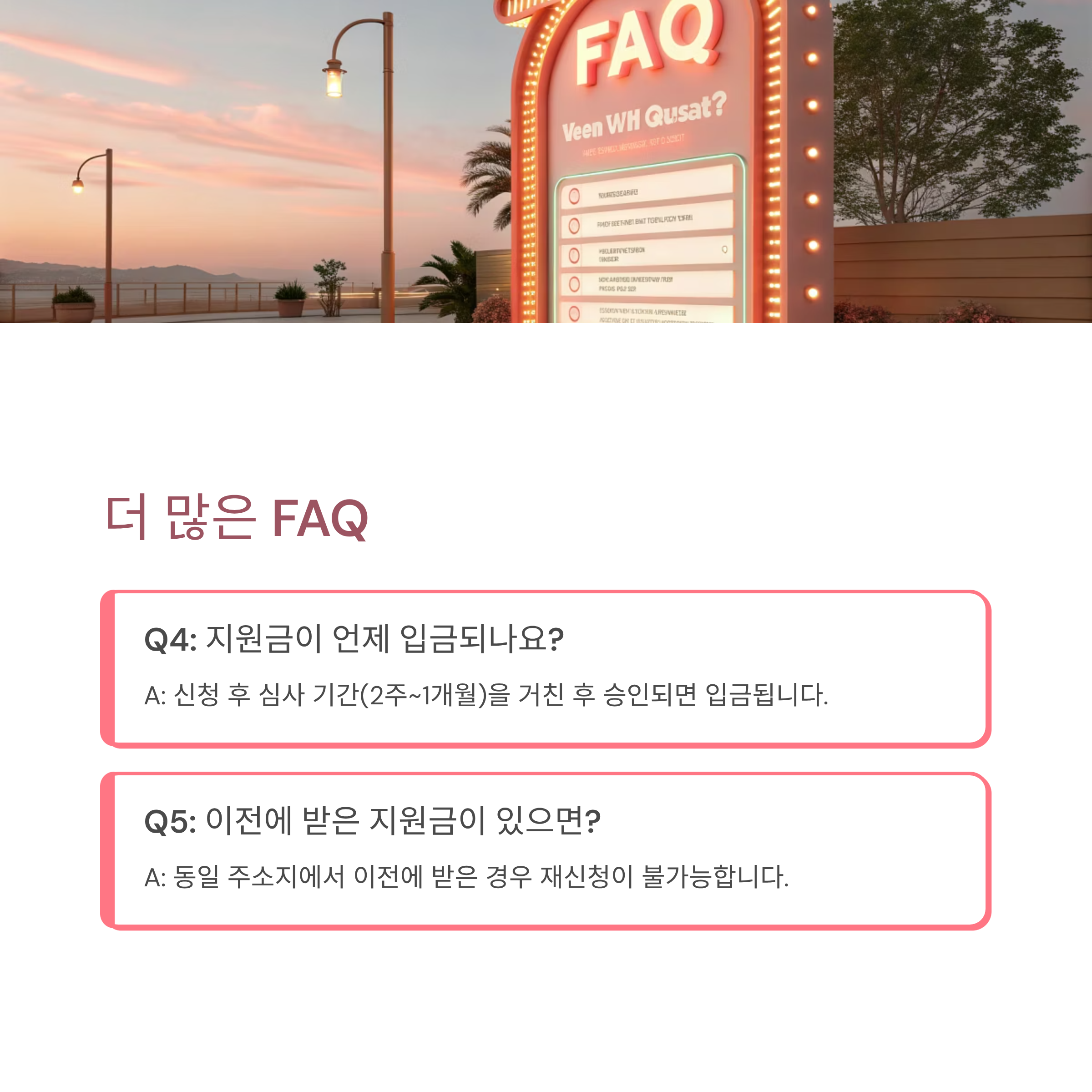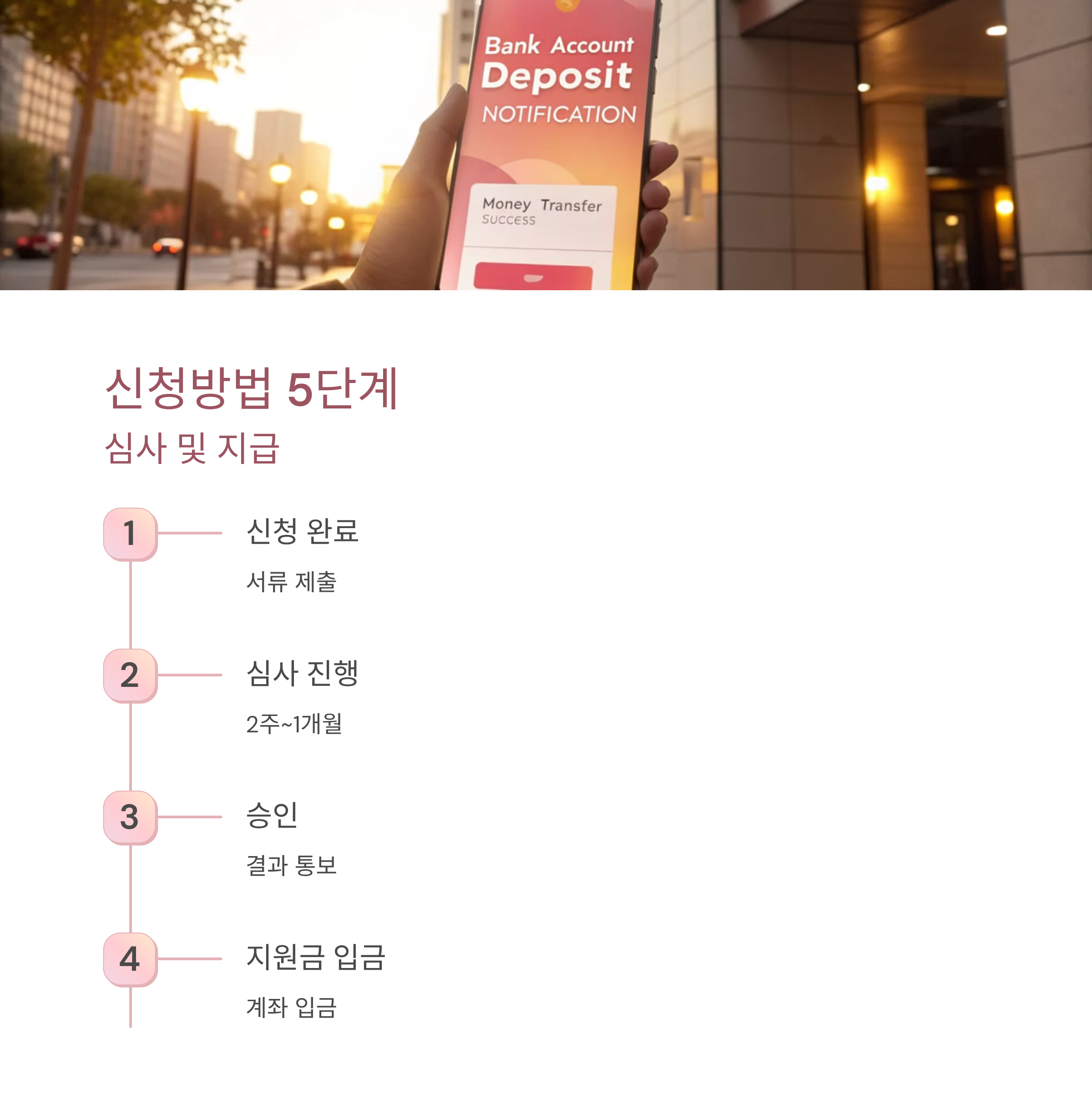 신청 후 지자체에서 심사를 진행합니다. 심사 기간은 통상 2주~1개월 정도 소요됩니다. 승인되면 신청 시 기입한 계좌로 지원금이 입금됩니다.