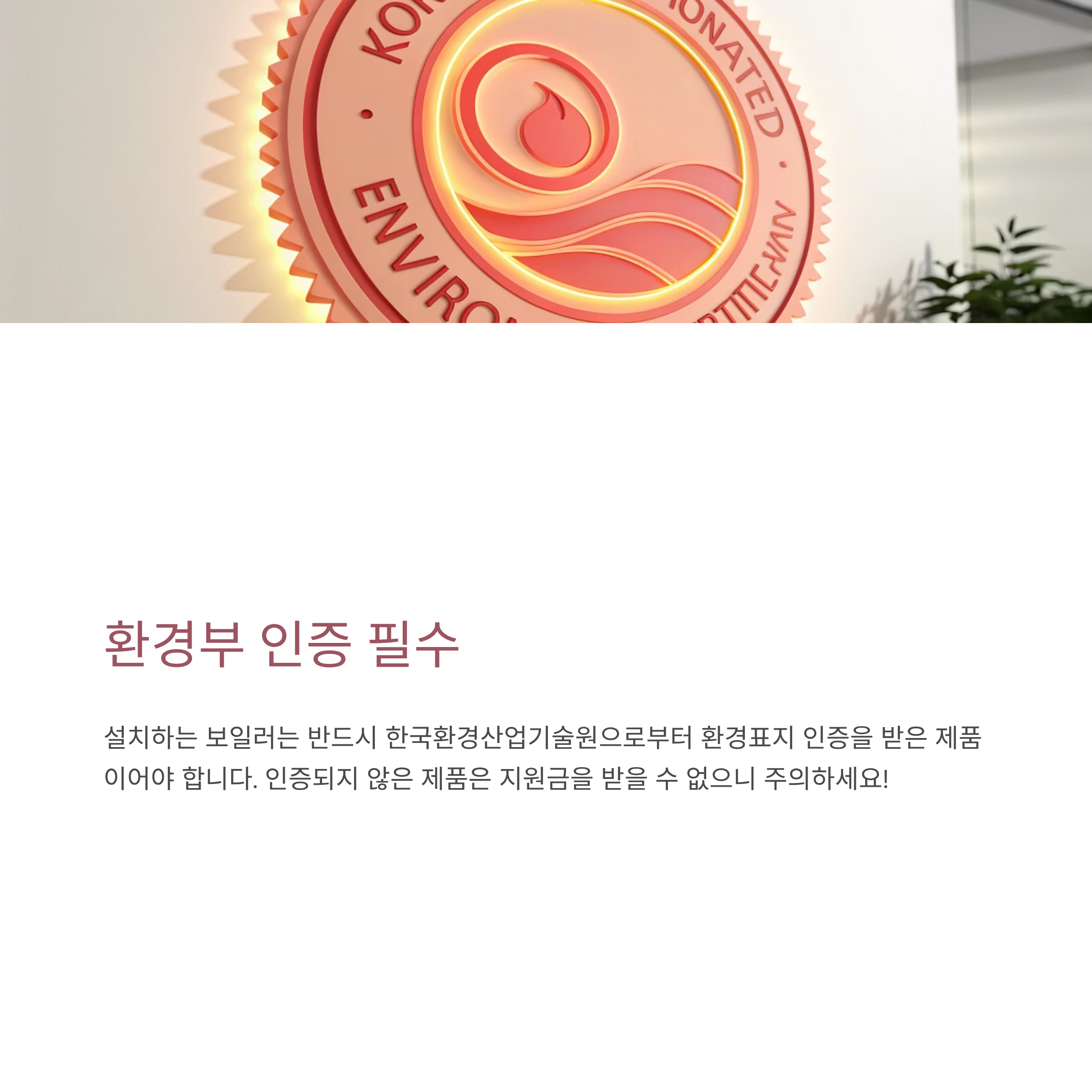 설치하는 보일러는 반드시 한국환경산업기술원으로부터 환경표지 인증을 받은 제품이어야 합니다.