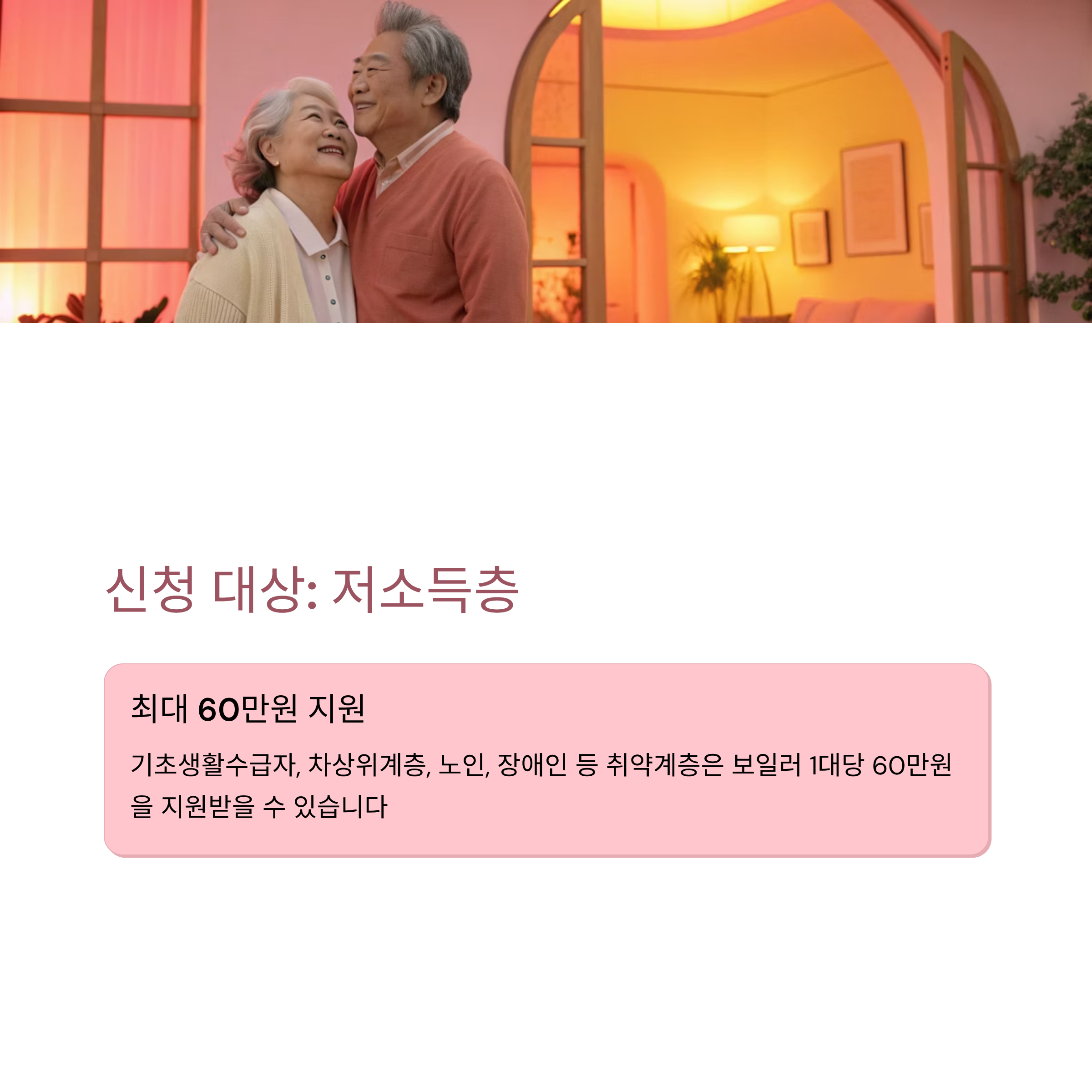 최대 60만원의 지원금 + 연간 44만원의 난방비 절감 효과까지 동시에 누릴 수 있는 이번 기회를 절대 놓치면 안 됩니다!