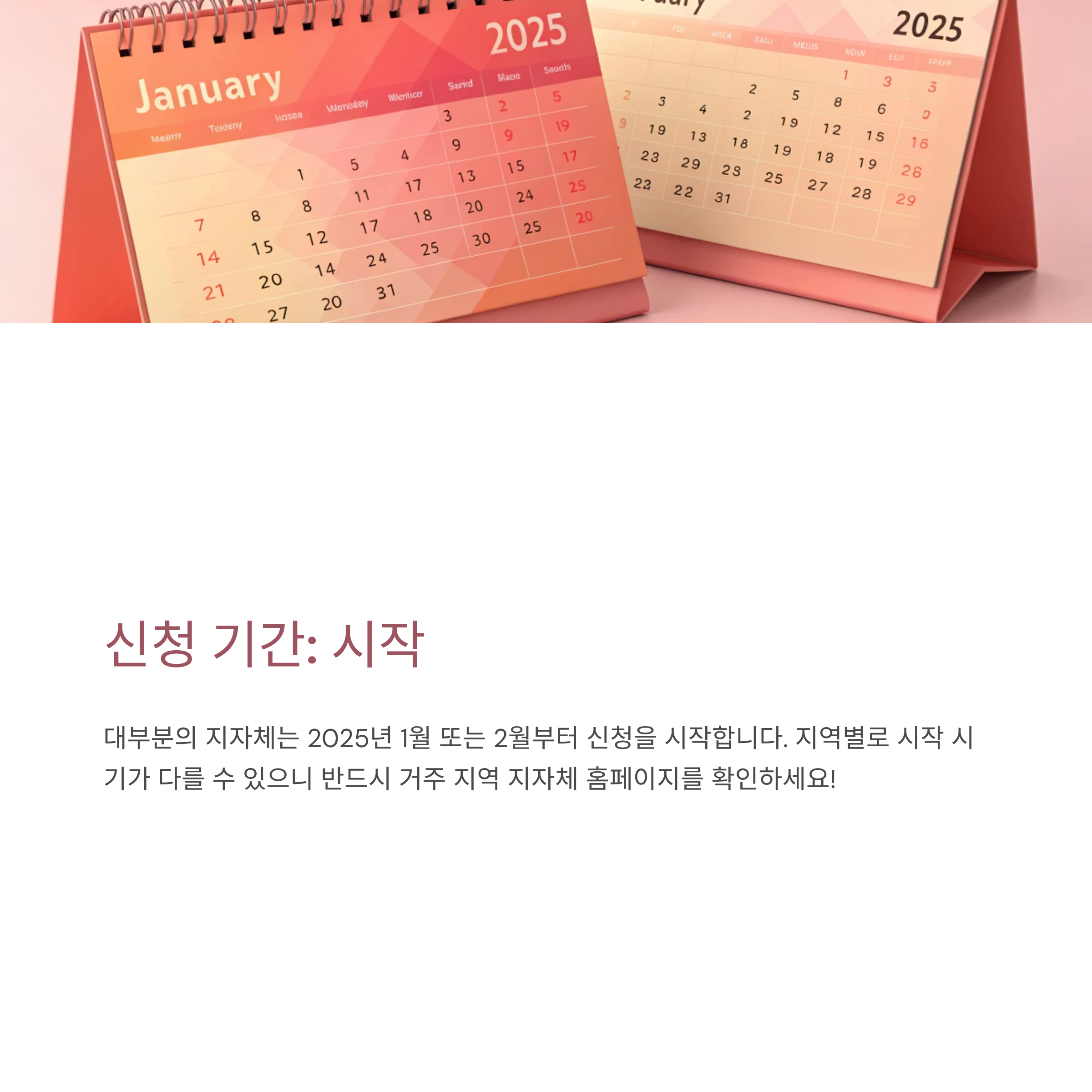 신청 시작: 2025년 1월~2월 (지자체별 상이)