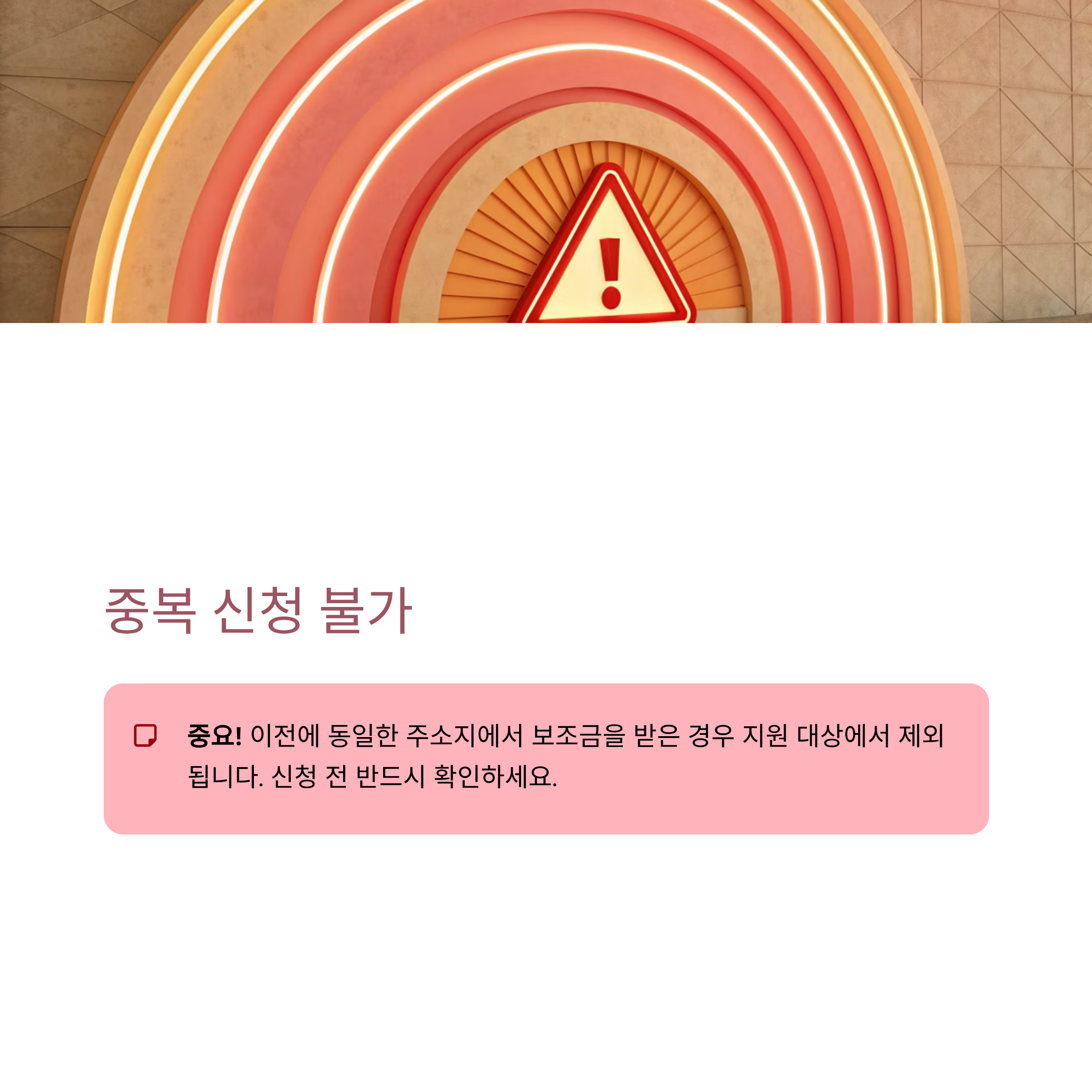 이전에 동일한 주소지에서 보조금을 받은 경우 지원 대상에서 제외됩니다.