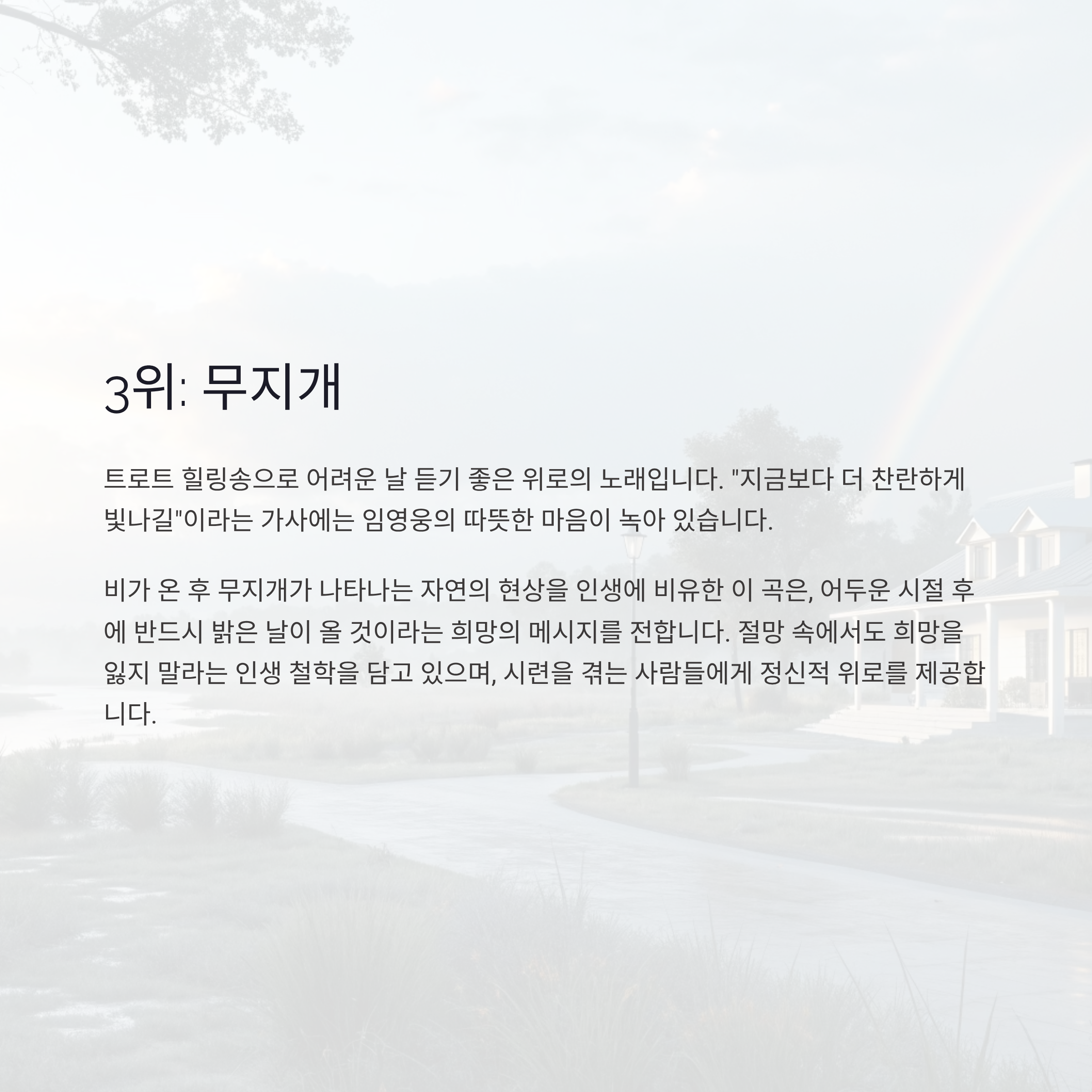 - 특징: 어려운 날 듣기 좋은 위로의 노래